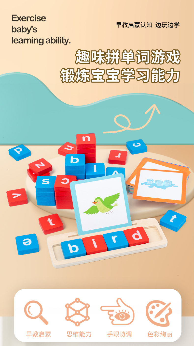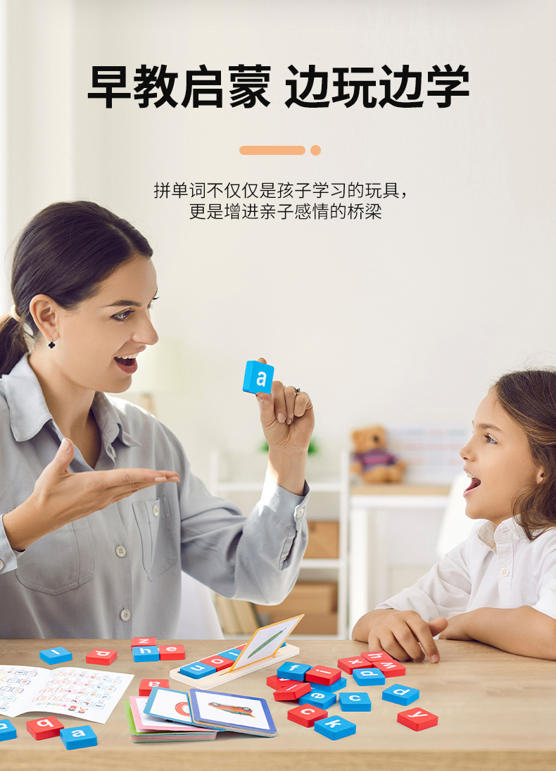 Transfronterizos niños iluminación tarjetas de inglés palabras deletreado padres-hijos interacción infantil juguetes de puzzle CPC y CE prueba de 3 años
