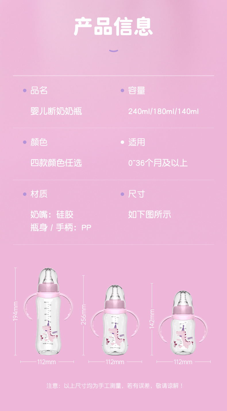 | Capacidad | 140ml botella curva-azul,140ml botella curva-rosa,140ml biberón curvo-verde,Botella curva de 180ml-Azul,Botella curva de 180ml-Rosa,Botella curva de 180ml-verde |