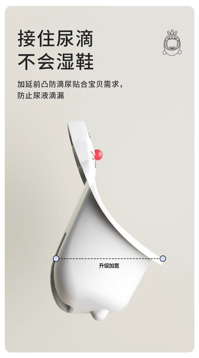 稳固可靠,安全无忧:与传统的吸盘式小便器相比,挂钩式安装通过精密设计的挂钩系统与墙面或地面紧密连接,有效避免了因吸盘老化、松动导致的安全隐患。无论是在家庭还是公共场所,都能确保使用的稳定性与安全性。