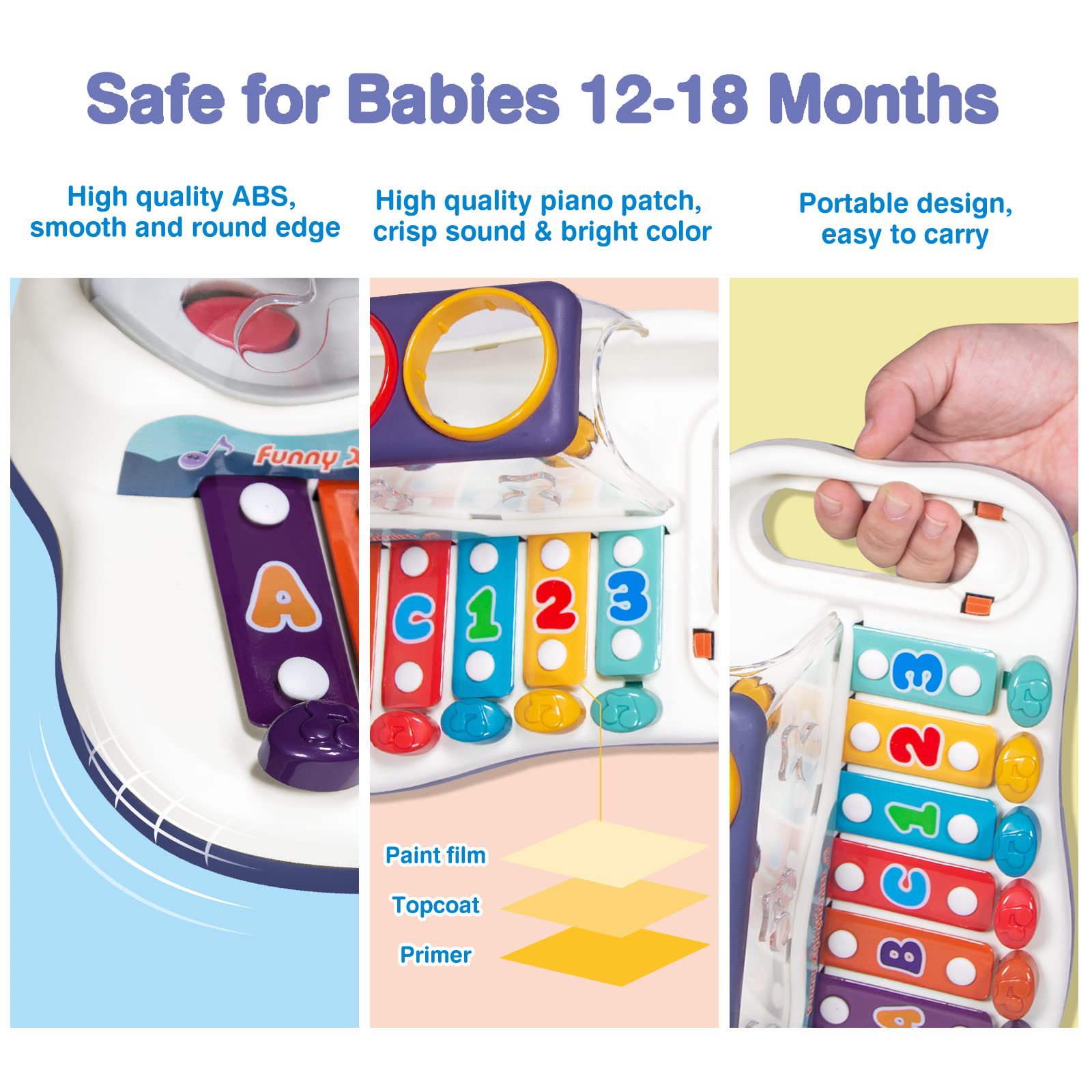 | Desarrollo de la capacidad | Emoción, visión, desarrollo intelectual, reptiles, Movimiento de manos y cerebro, agarre, sentidos, coordinación mano - ojo, otros desarrollos de habilidades, juguetes interactivos, audición, comunicación padre - hijo, cultivo de intereses |