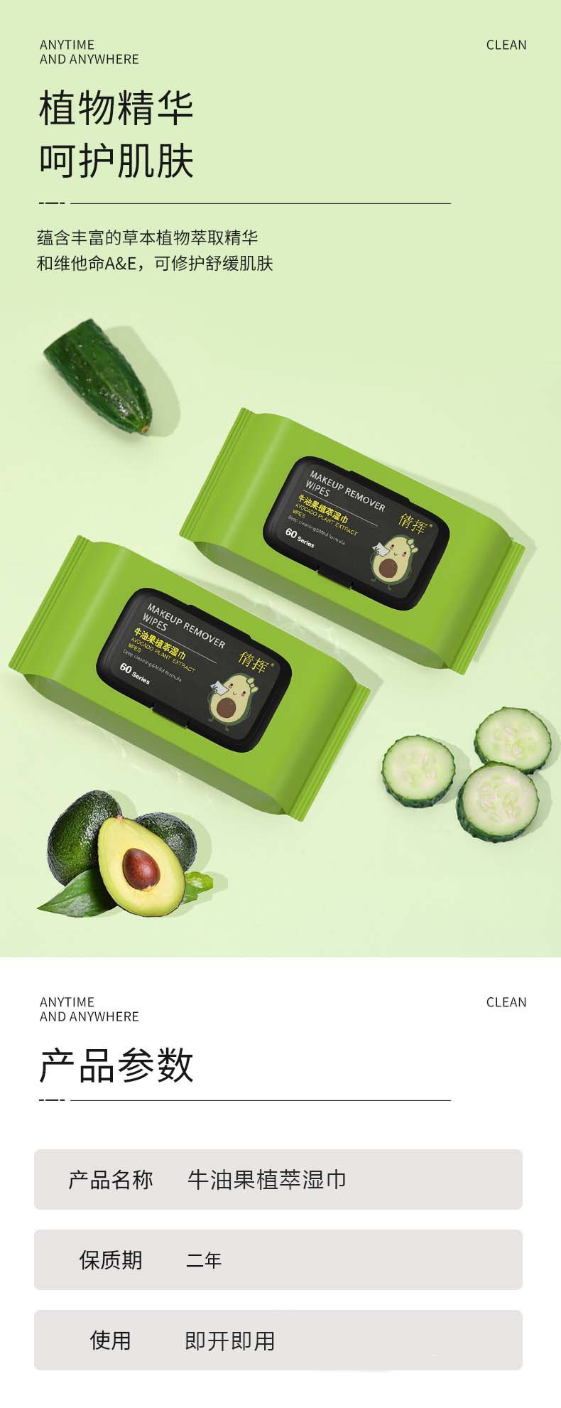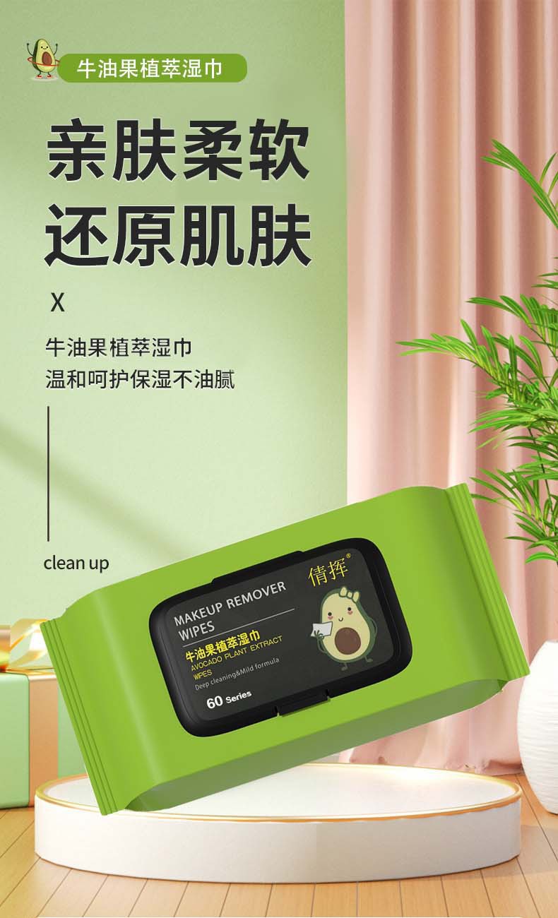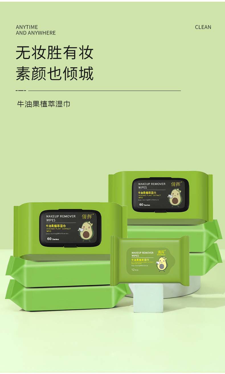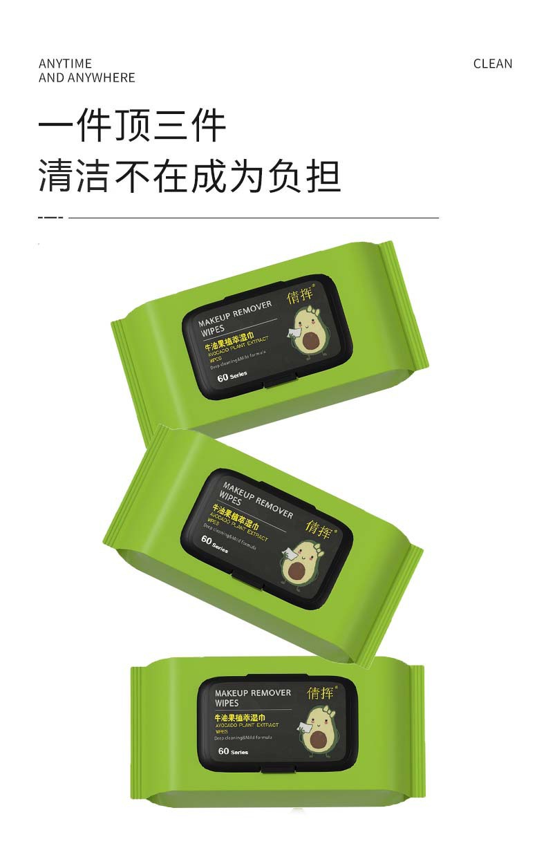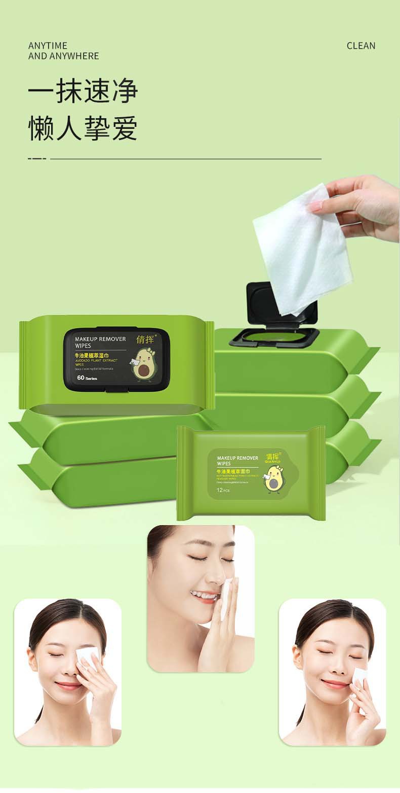 Desmaquillador de aguacate, toallitas de limpieza, toallitas de limpieza, maquillaje facial, ojos y labios, desmaquillador profundo, toallitas húmedas desechables al por mayor