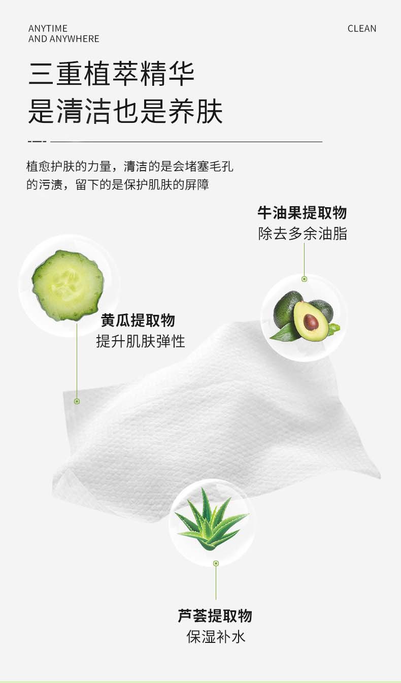 Aguacate Plant Extract Clean Toallitas para ojos, labios y cara Limpieza profunda desechable Water Cotton Extracción Toallitas portátiles