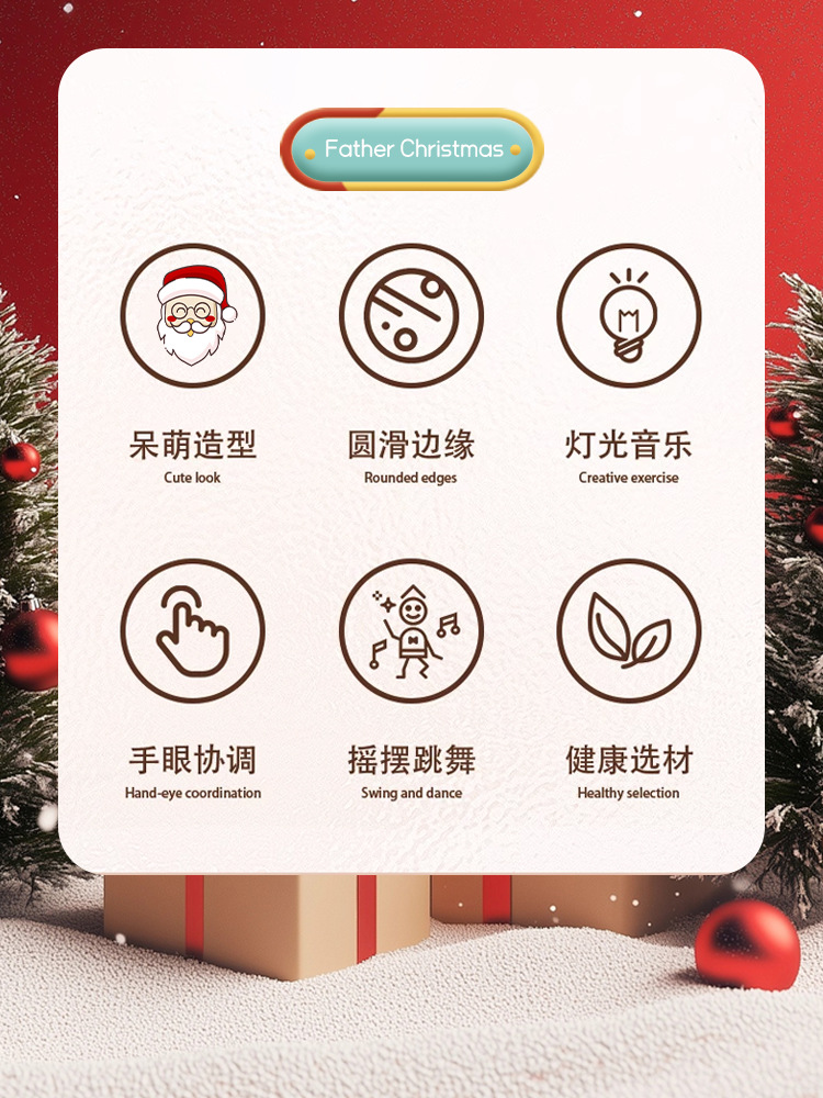 | Desarrollo de la capacidad | Emoción, visión, desarrollo intelectual, reptiles, Movimiento de manos y cerebro, agarre, sentidos, coordinación mano - ojo, otros desarrollos de habilidades, juguetes interactivos, audición, comunicación padre - hijo, cultivo de intereses |