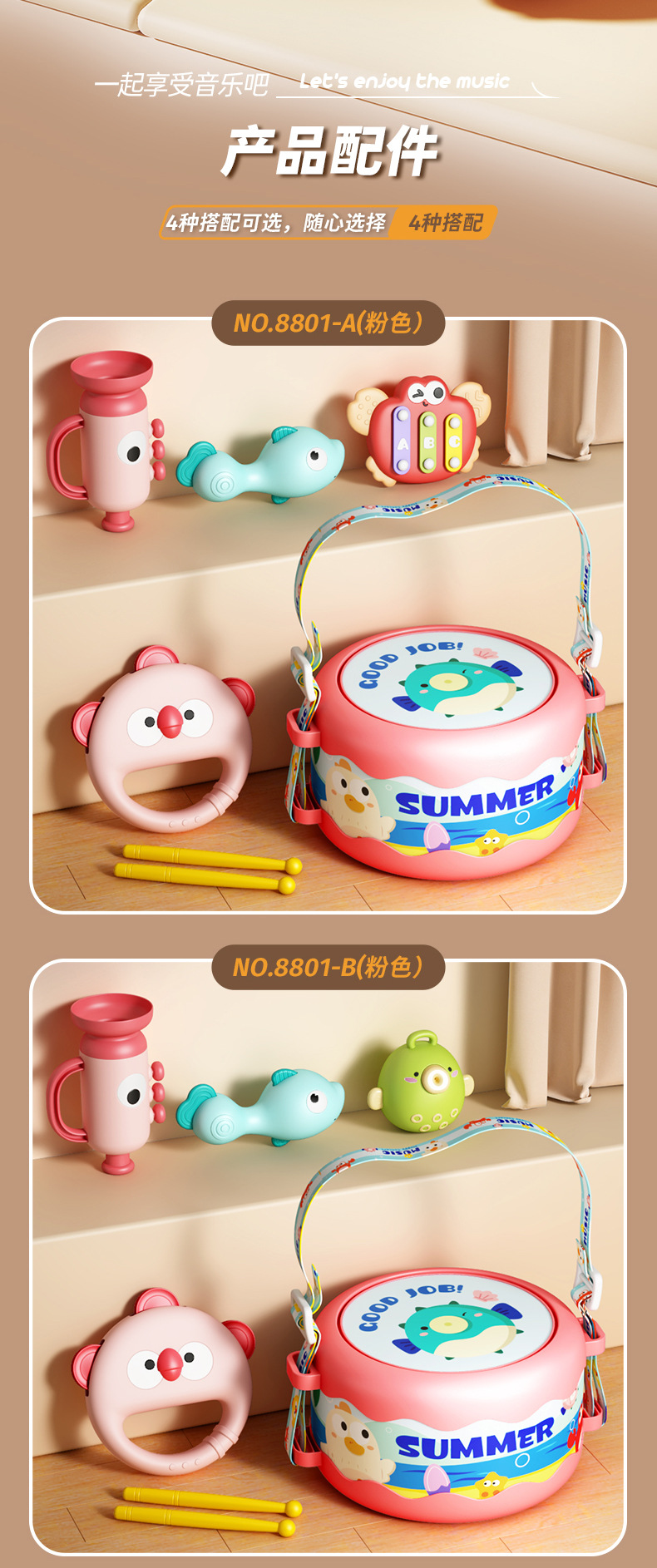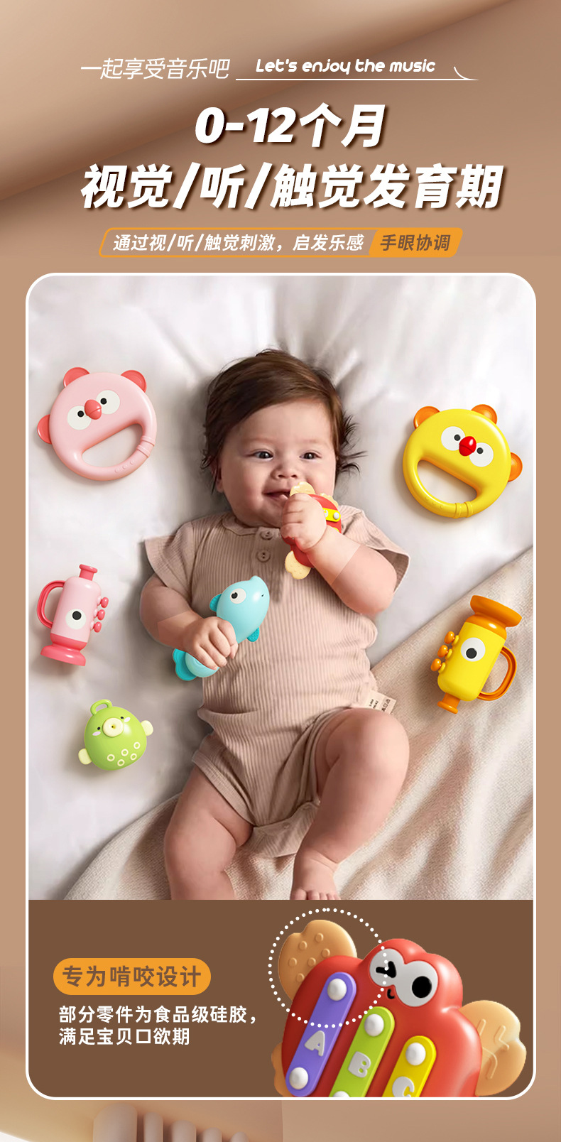 | Desarrollo de la capacidad | Emoción, visión, desarrollo intelectual, reptiles, Movimiento de manos y cerebro, agarre, sentidos, coordinación mano - ojo, otros desarrollos de habilidades, juguetes interactivos, audición, comunicación padre - hijo, cultivo de intereses |