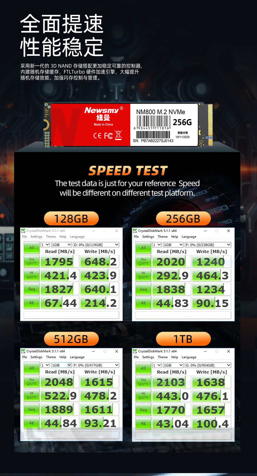 | Capacidad | 256GB Newman NM800, 512GB Newman NM800, 1TB Newman NM800 |