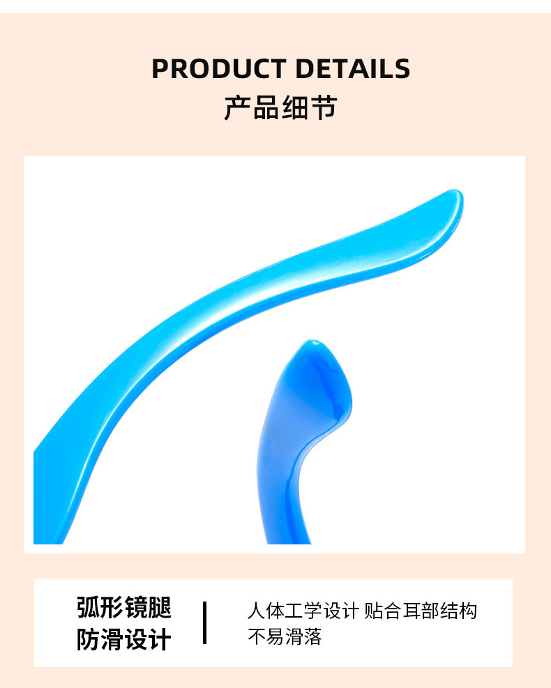 | Color del marco | Hoja gris de marco negro, hoja gris de marco verde, pierna amarilla de marco azul, pierna azul de marco azul, pierna púrpura de marco rosa, pierna púrpura de marco rosa, bolsa de gafas negras, bolsa de gafas blancas |