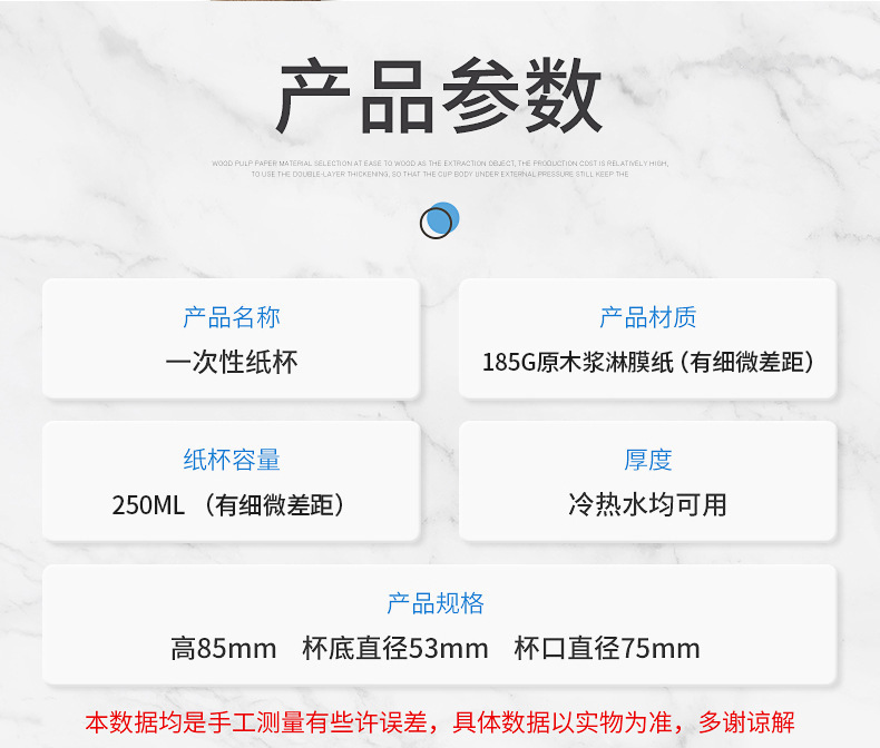 Taza de papel desechable blanca pura taza de papel grueso 500/400/250/200/100/50/30ml