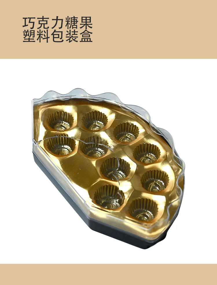 Caja de plástico en forma de ventilador de 10 cápsulas, bola de chocolate, dulces, dulces, galletas de boda, caja de embalaje de plástico PS