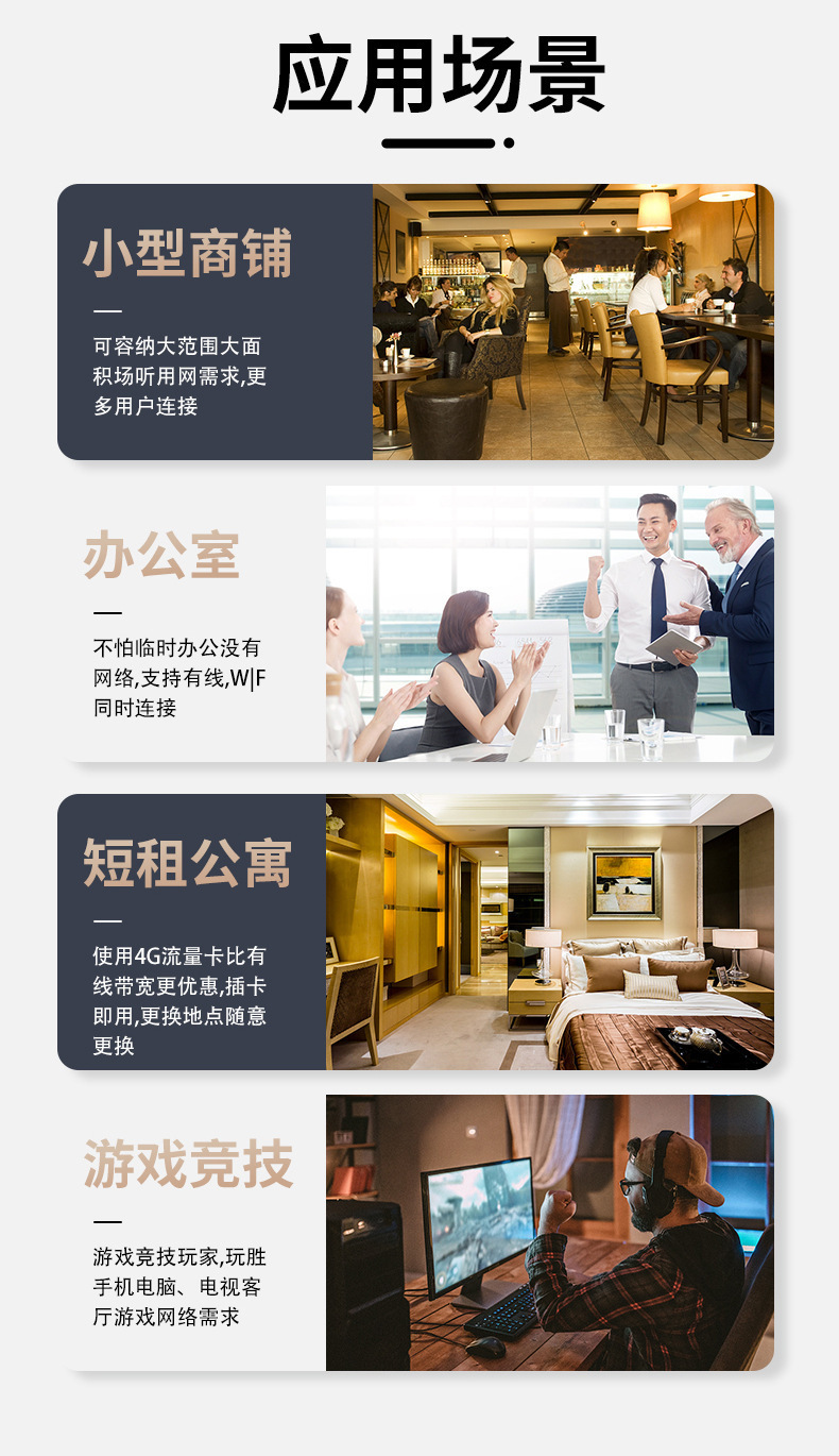 | Escenarios de aplicación | Oficina corporativa. Transmisión en vivo del juego. Pequeñas tiendas. Dormitorio de estudiantes. El hogar, etc. |