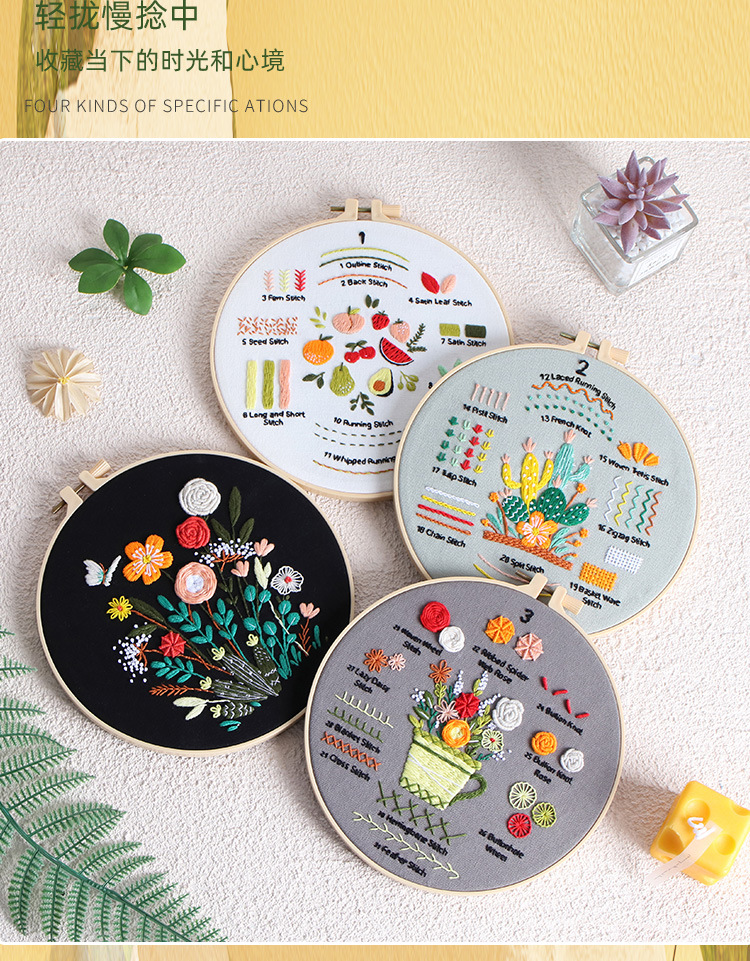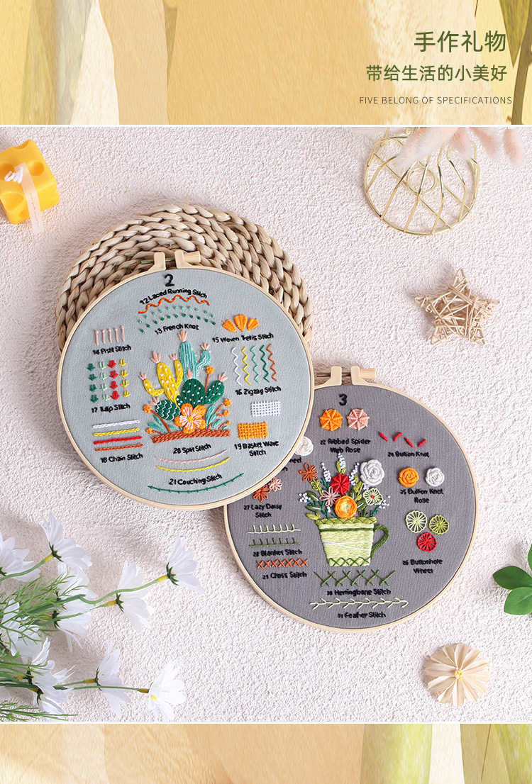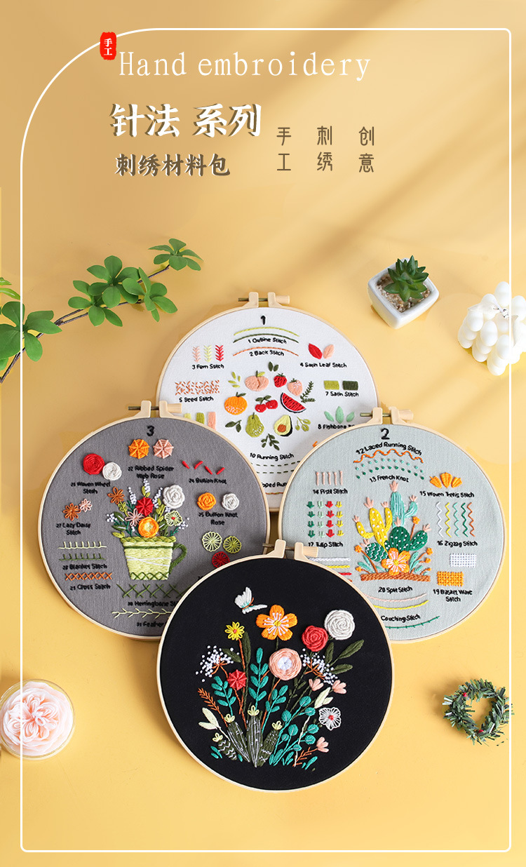 三件套材料包+1绣绷+小工具,重量约为180克,包装尺寸约23*23*2.5cm