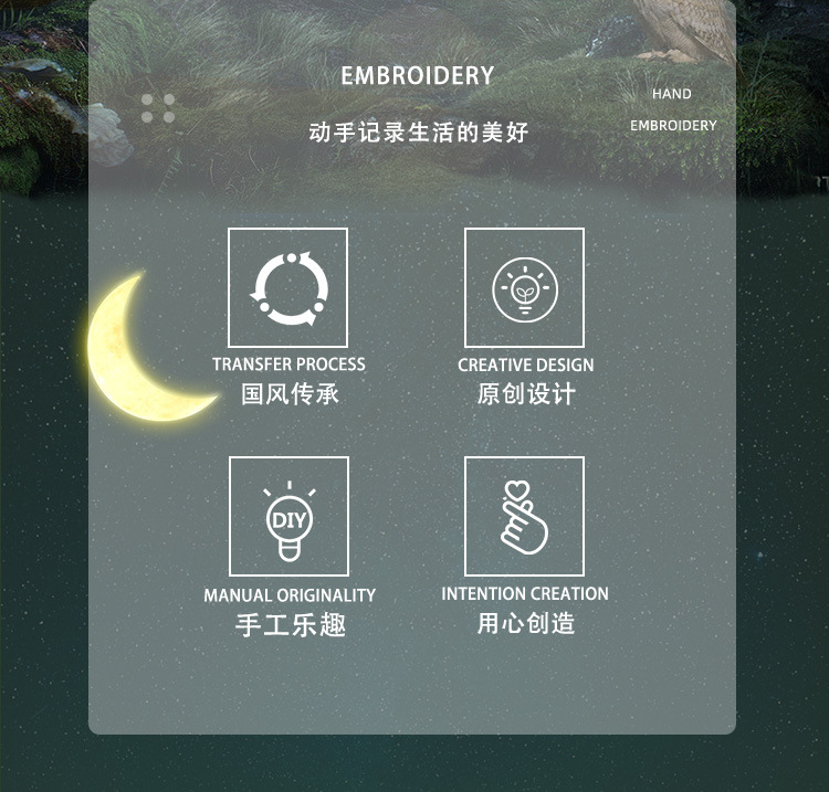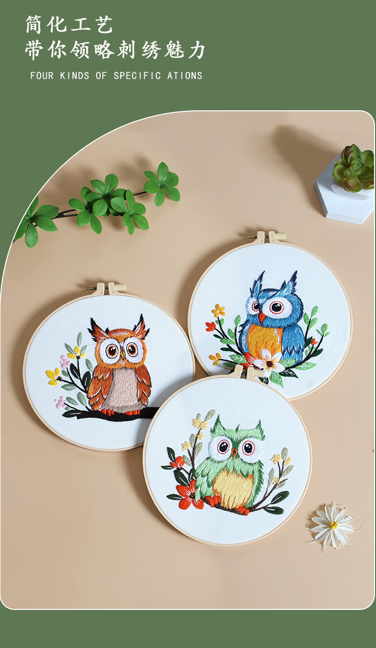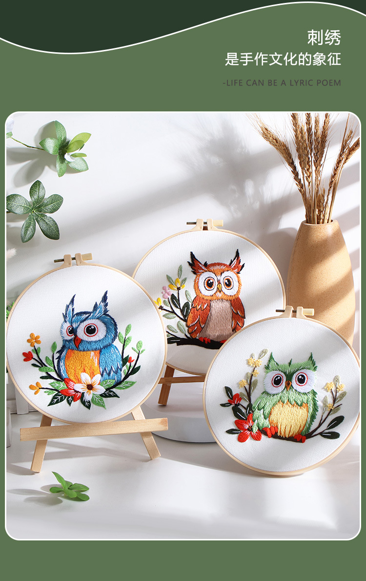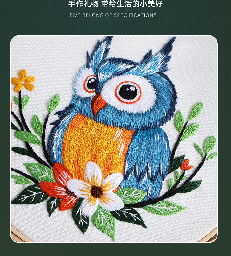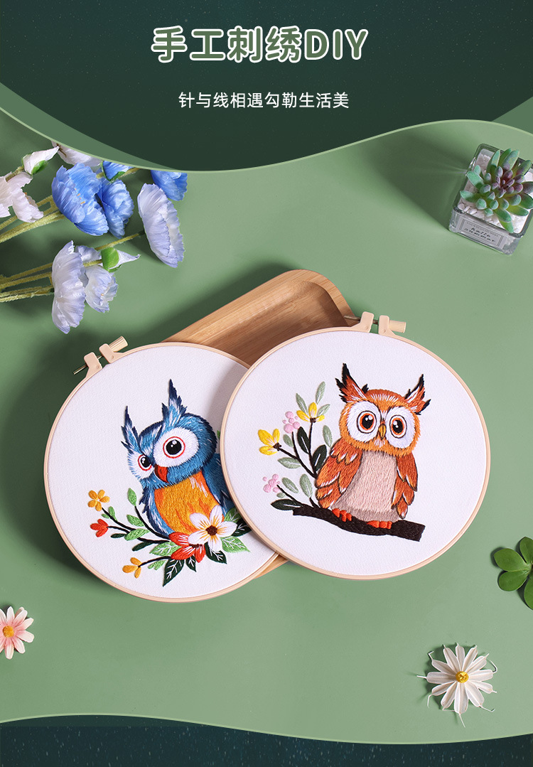 每个图案的材料包由OPP袋子单独包装,然后和绣绷进行二次包装(用PE拉链袋),这样就组成了单款的一套(材料包+仿竹绣绷),简称单套。
