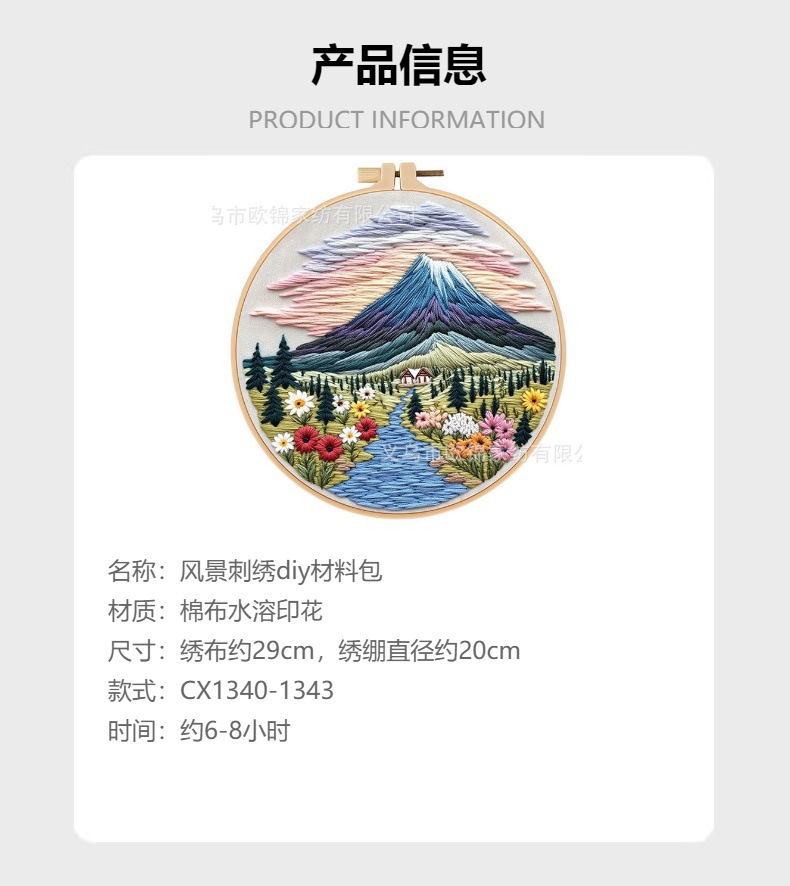 单套材料包+绣绷,重量约100克,包装尺寸约23x23x1.5cm(实际每个款都会有一点误差)。