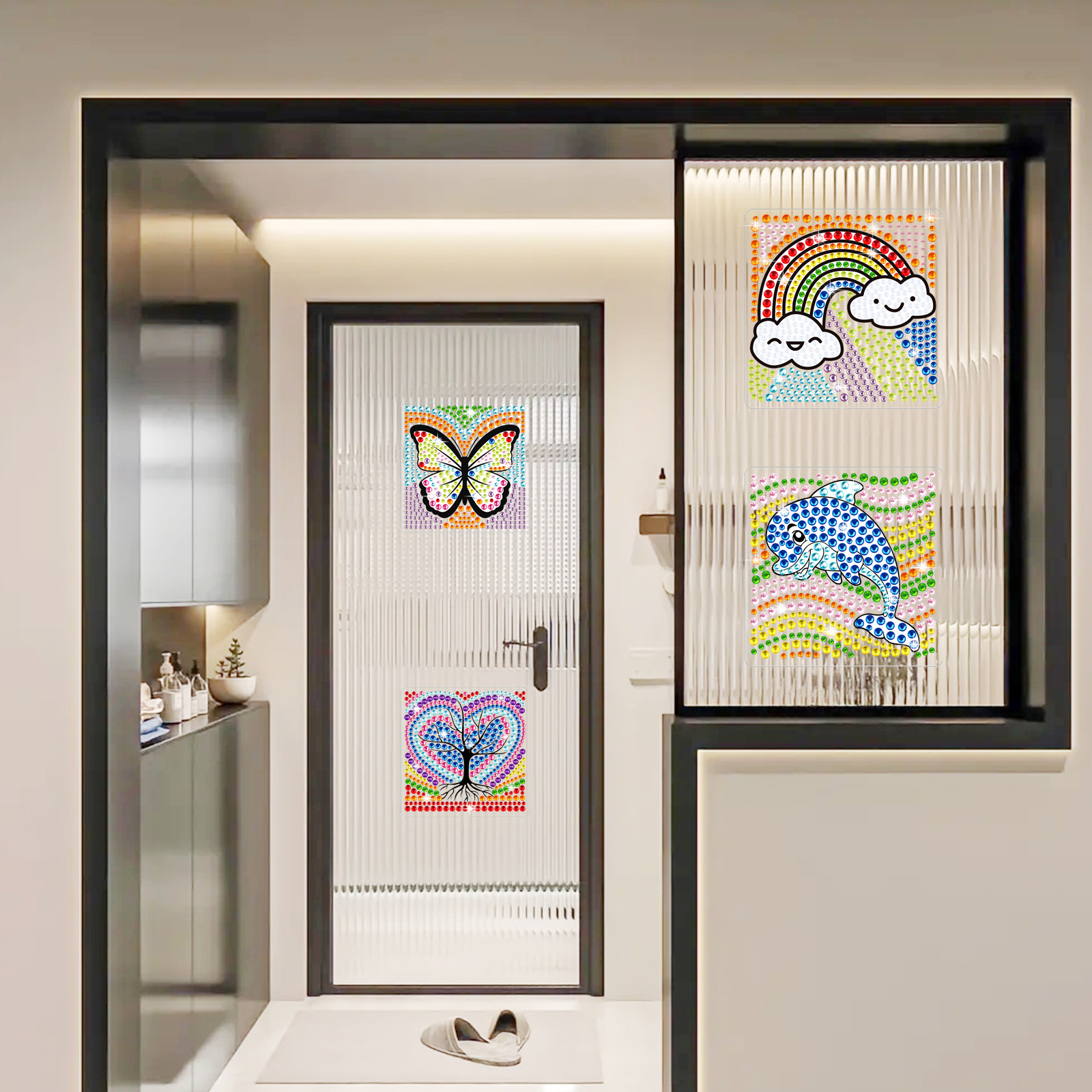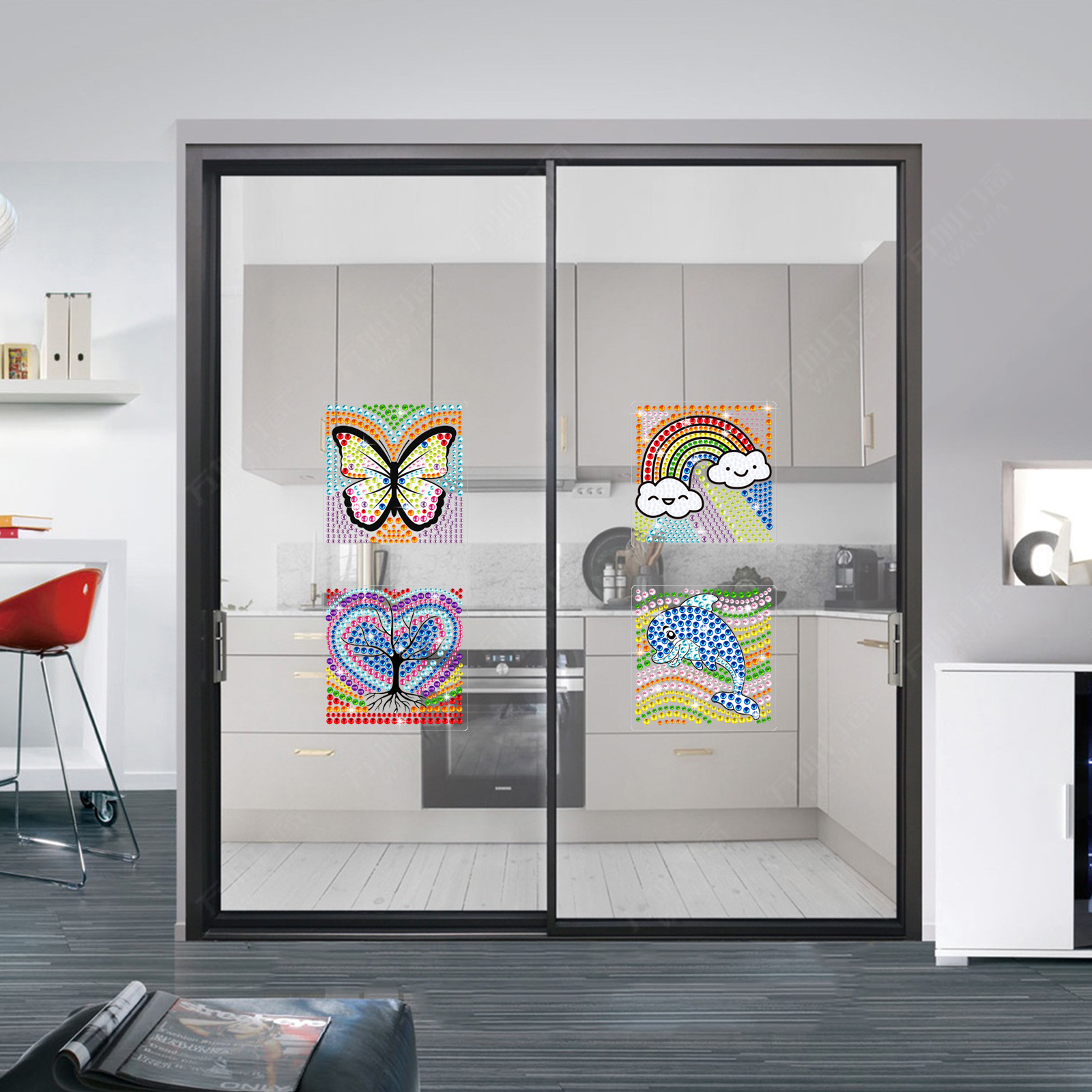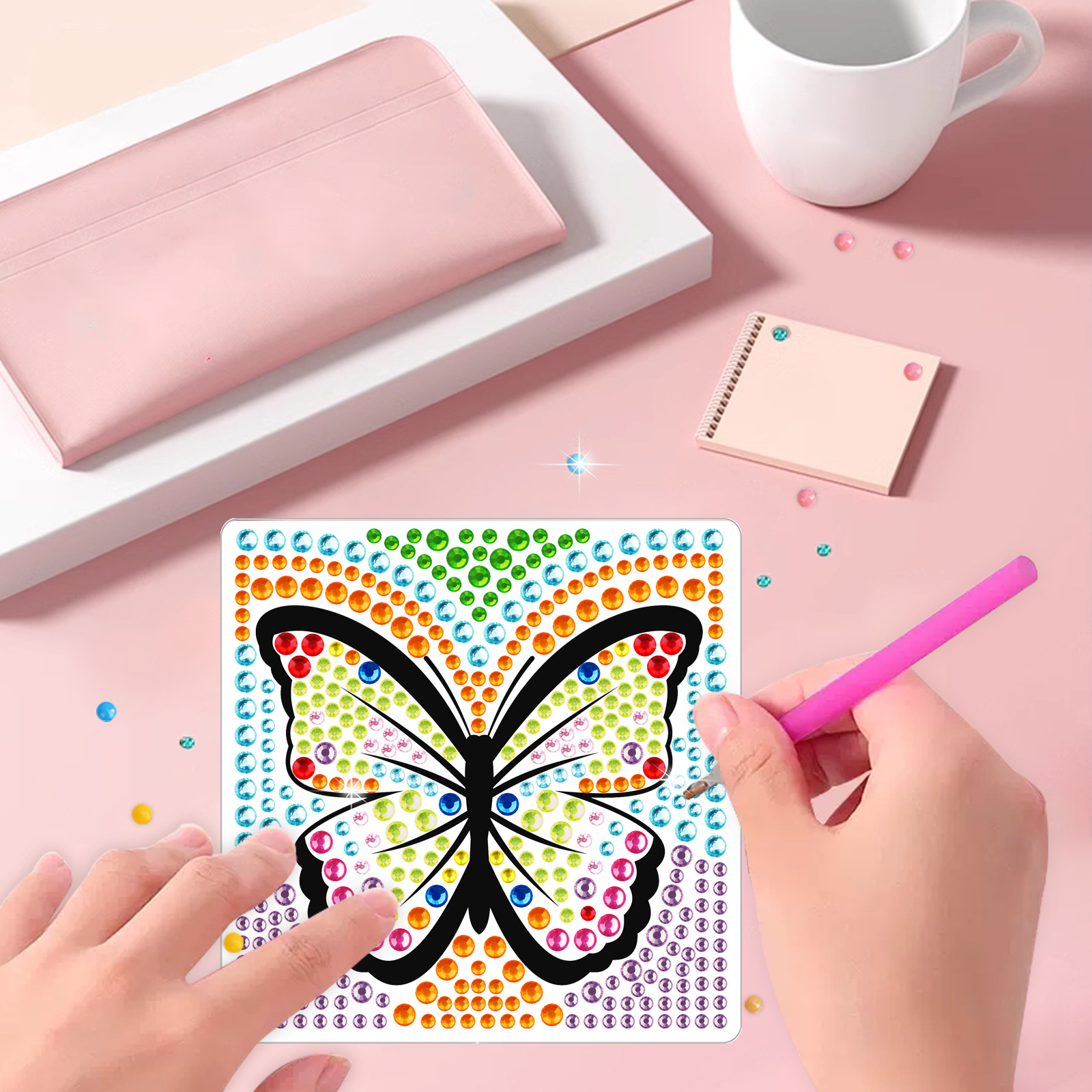 Los mejores dibujos animados arco iris mariposa delfín dibujo de diamantes pegatinas DIY pegatinas de mampostería para niños hechos a mano cristal brillante diamante