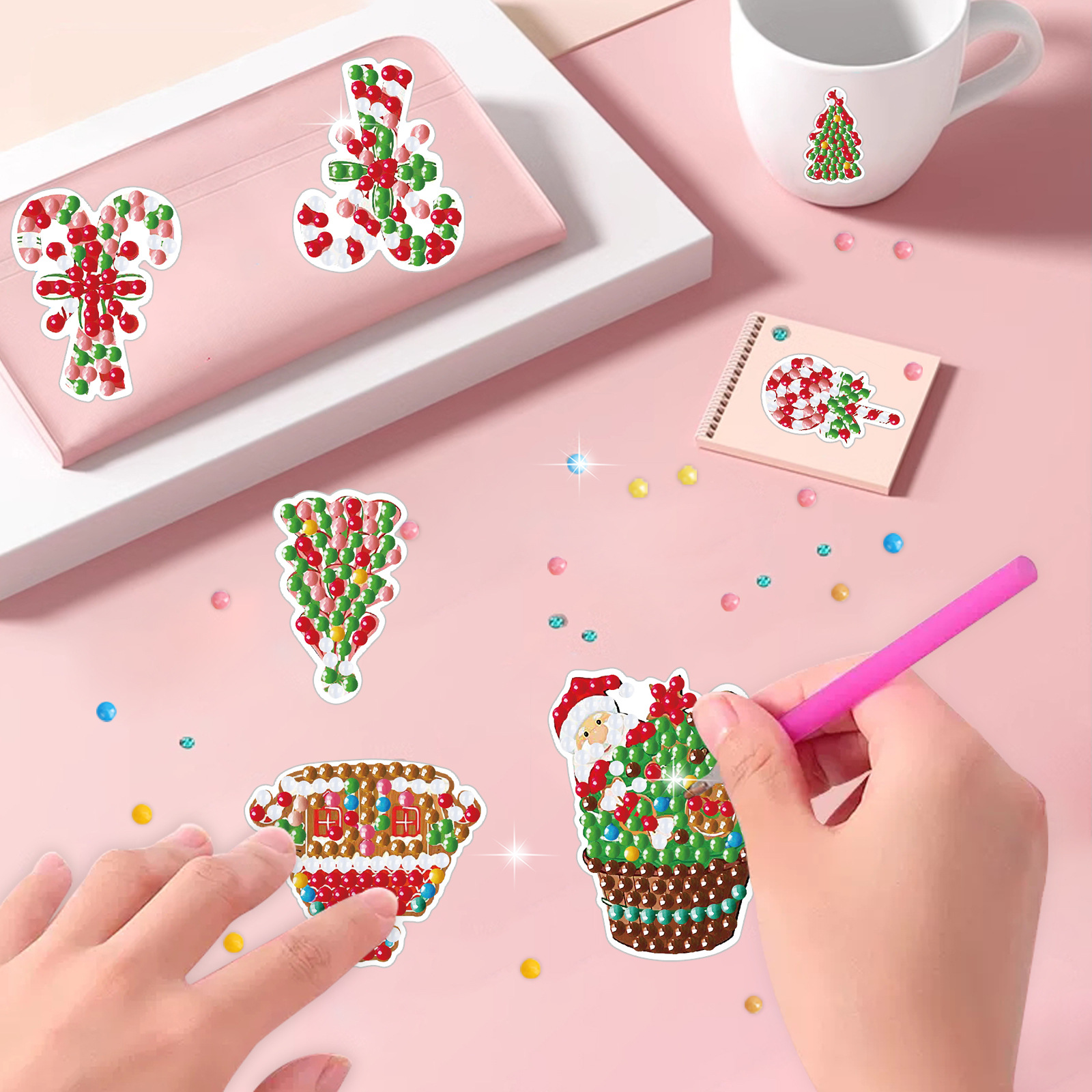 Dibujos animados Navidad Pintura de diamantes Pegatinas al azar Hecho a mano Diy Pintura de mampostería Pegatinas de pared Pegatinas para niños Pegatinas Diamantes redondos