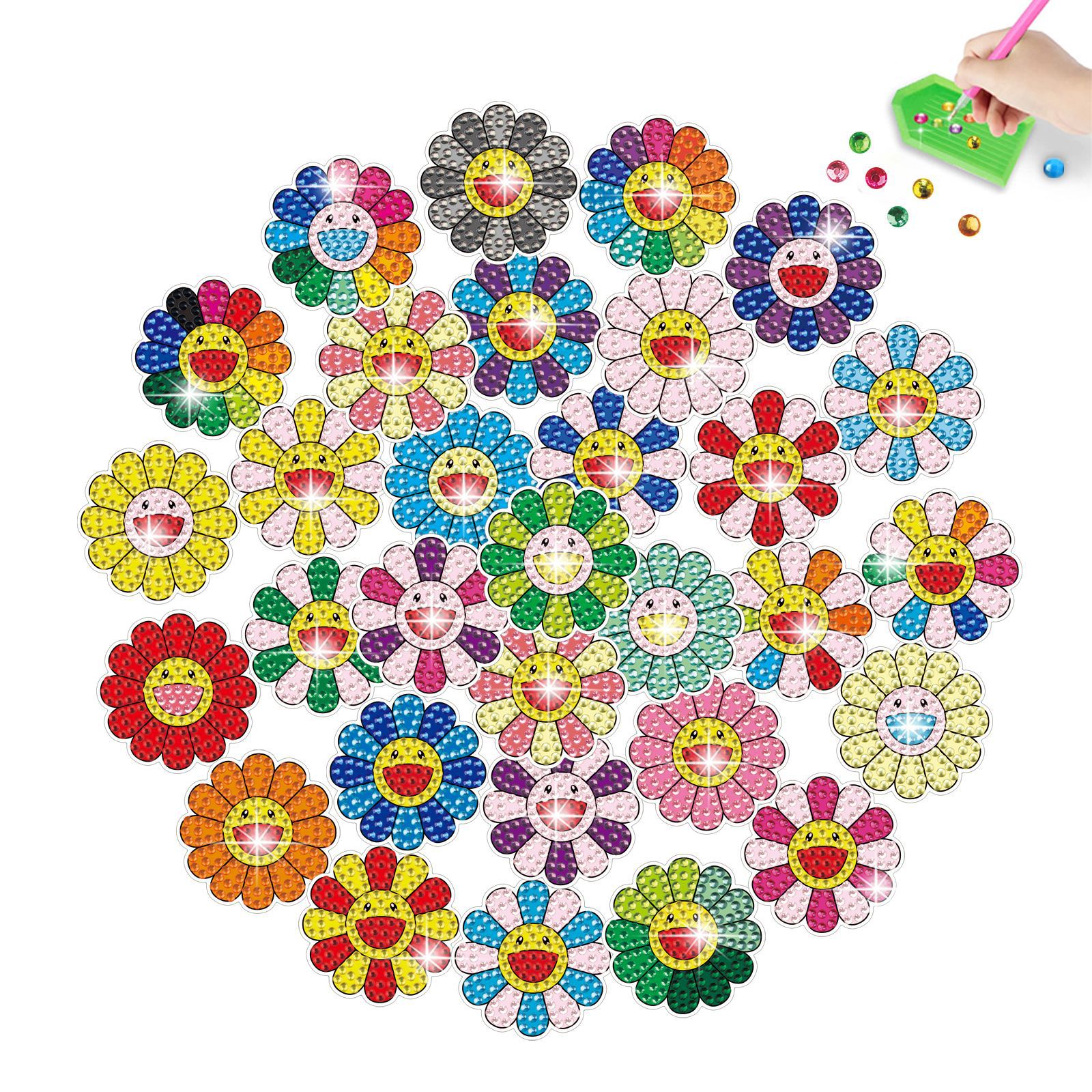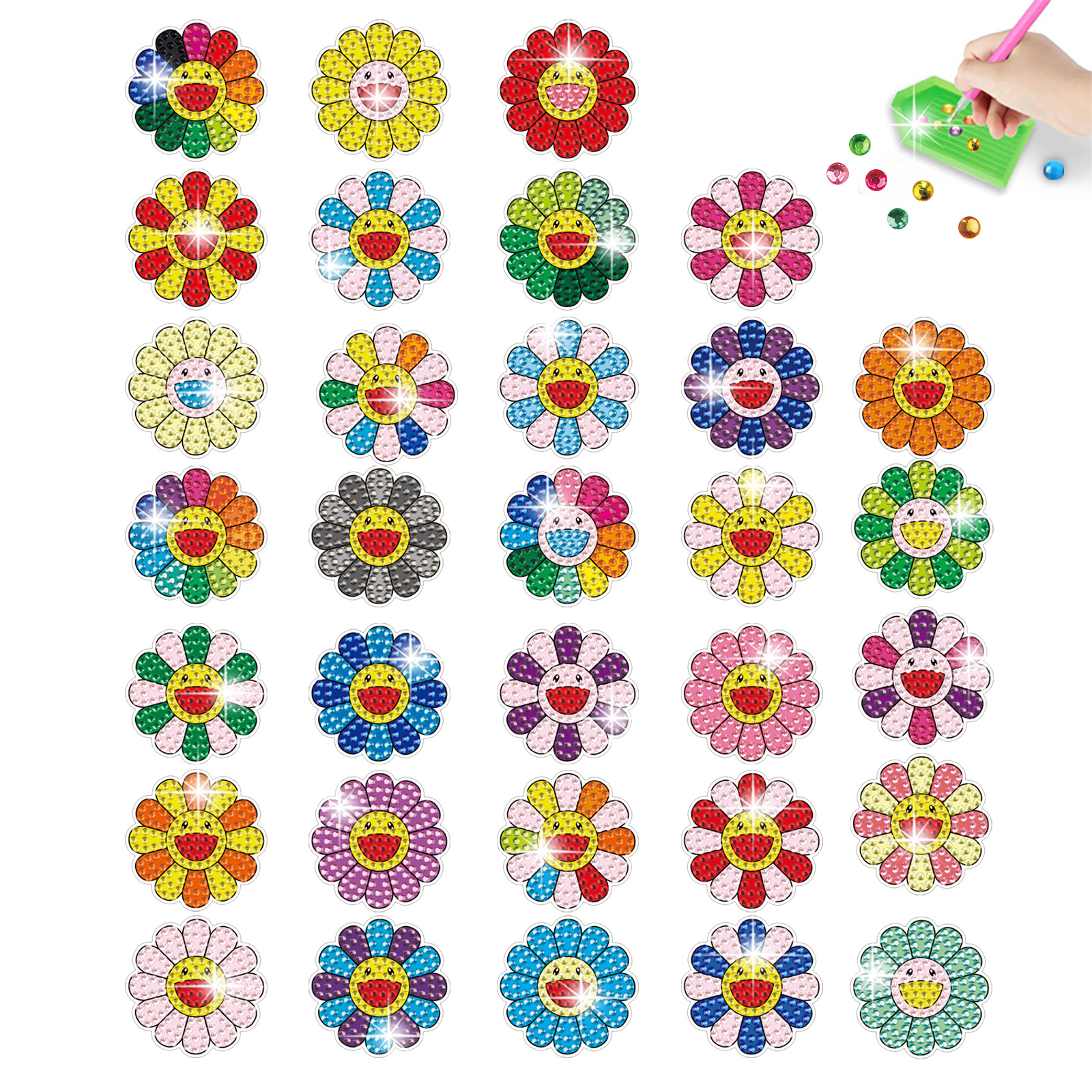 Ventas calientes de dibujos animados pegatinas de flores de diamantes dibujos hechos a mano diy aleatorios pegatinas de ladrillo pintura de piedra pegatinas de pared cristal brillante pegatinas de diamante