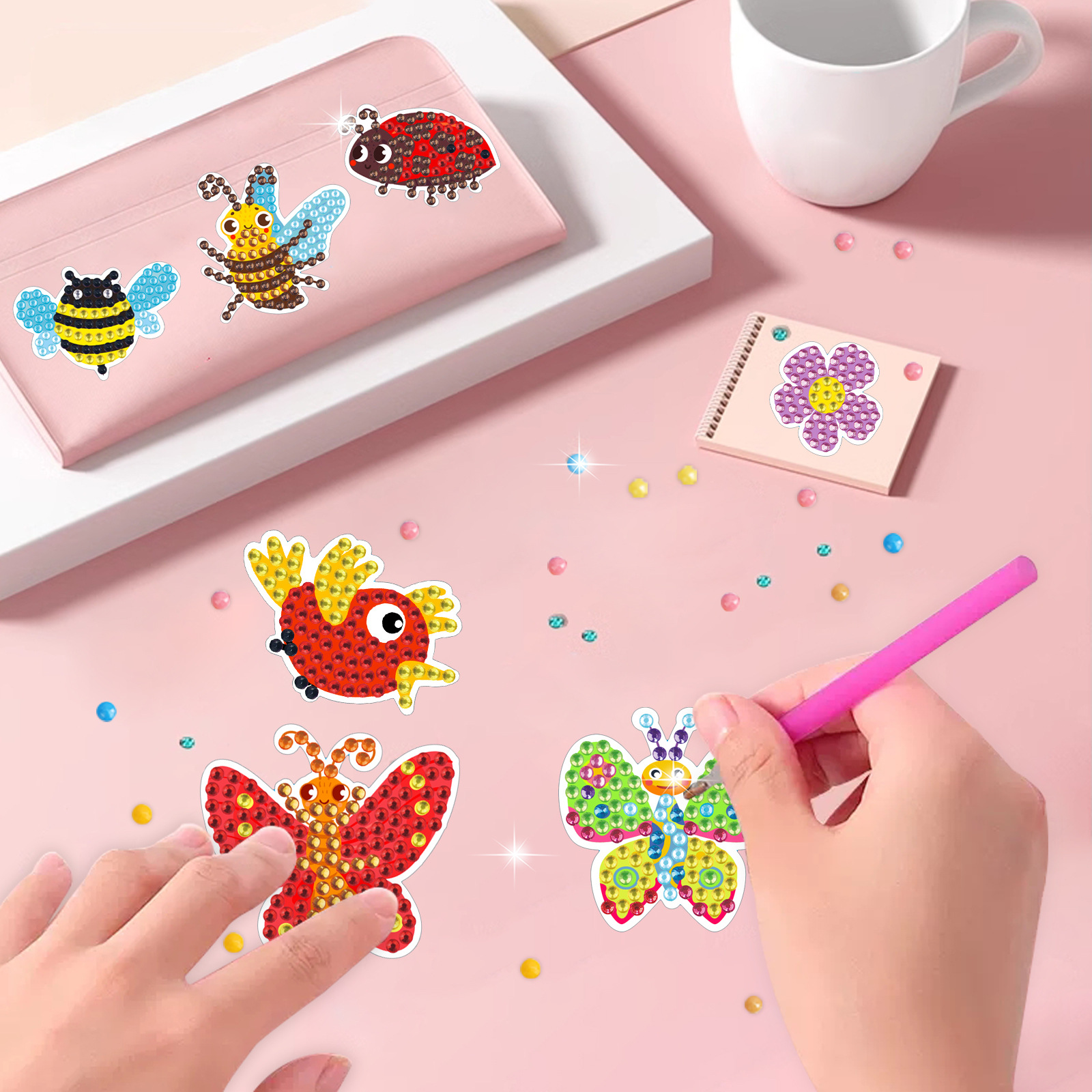 Venta caliente de dibujos animados pequeño insecto diamante pintura libre pegatinas DIY ladrillo pintura Pegatinas de pared hecho a mano 5d cristal brillante diamante