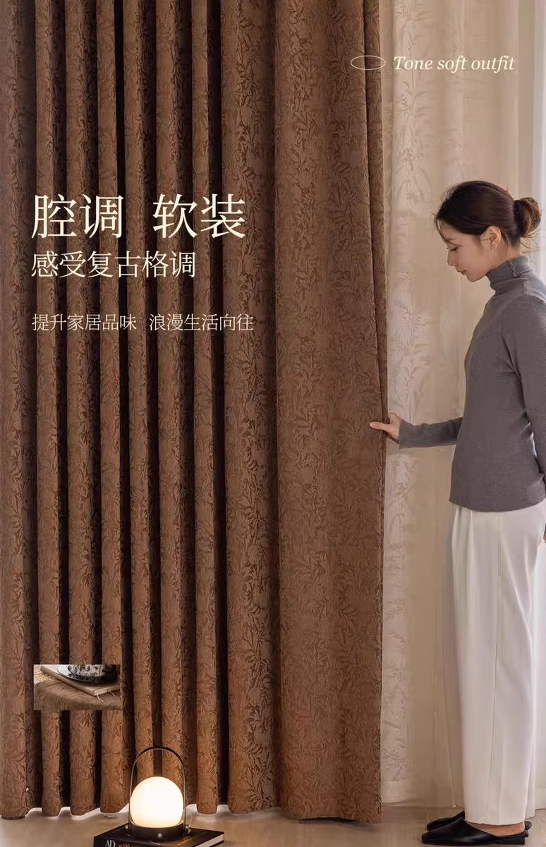 Nueva cortina de rosa de estilo antiguo francés, sombreado, sala de estar, dormitorio, sensación de alta calidad, cortina terminada Shaoxing Keqiao al por mayor
