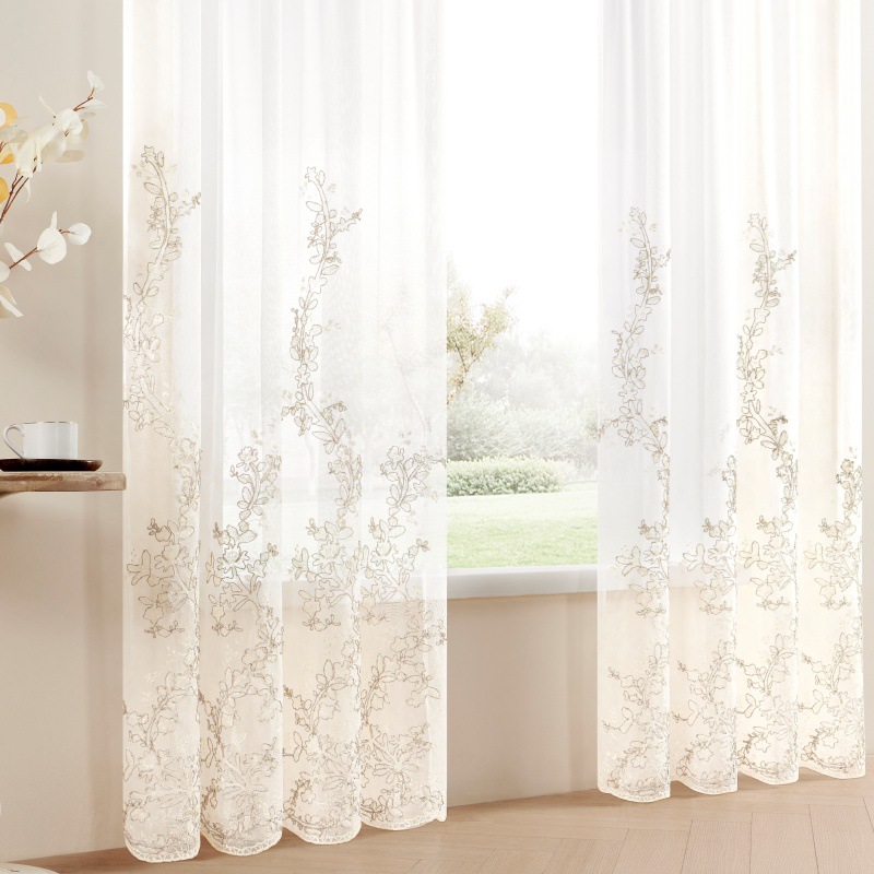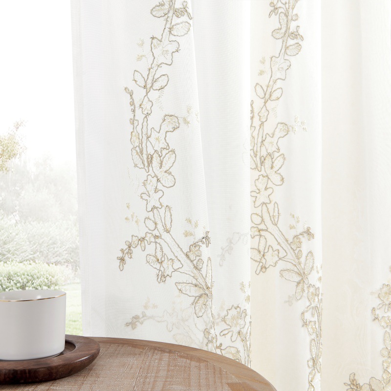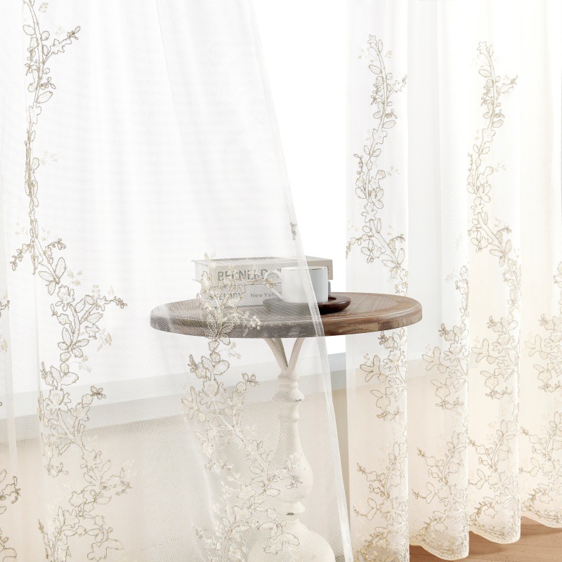 2024 nuevo estilo europeo bordado ligero balcón sala de estar ventana flotante dormitorio bordado cifrado cortina blanca