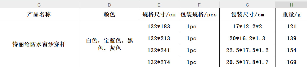 | Número de artículo | Varilla de malla de ventana impermeable Terylon de una sola cadena |