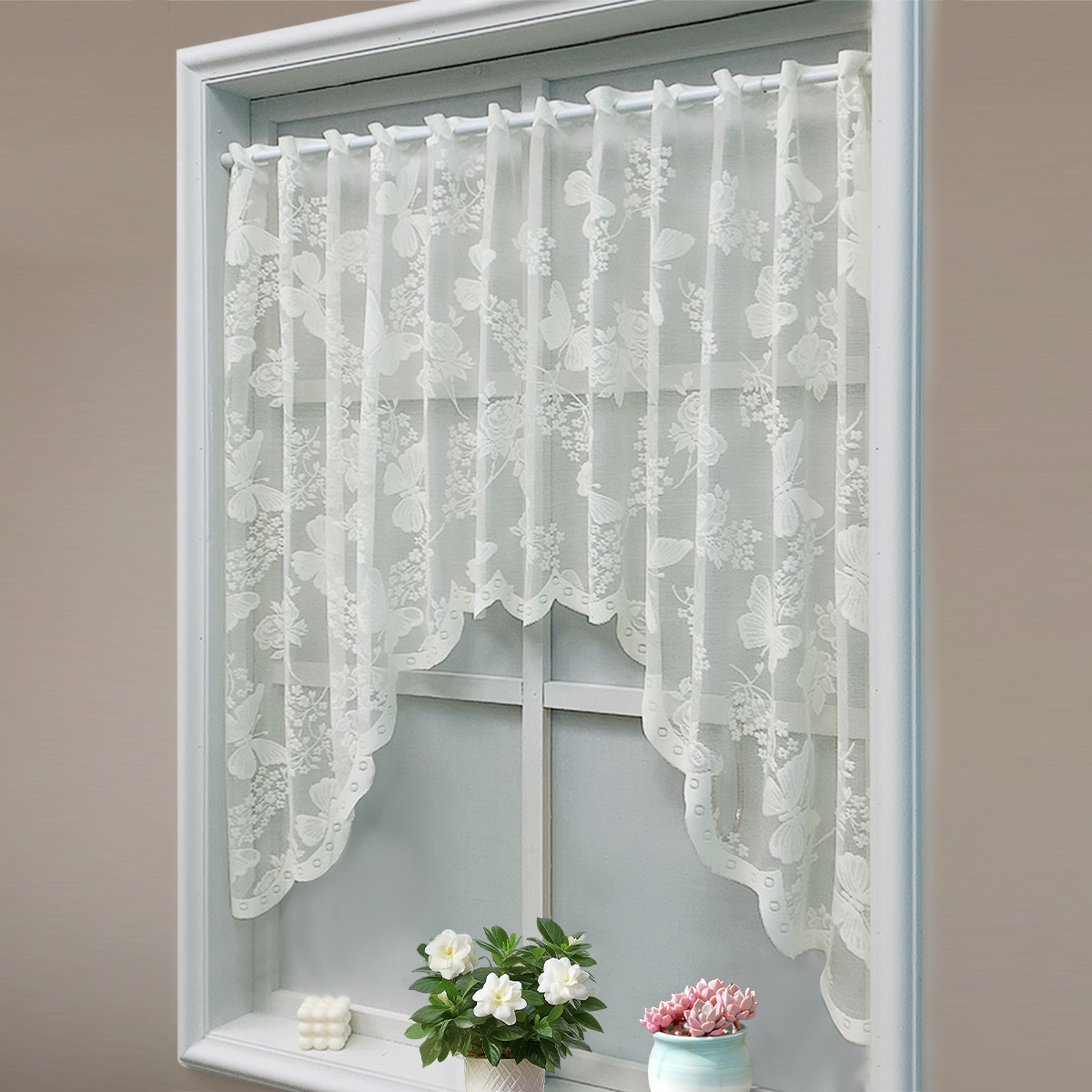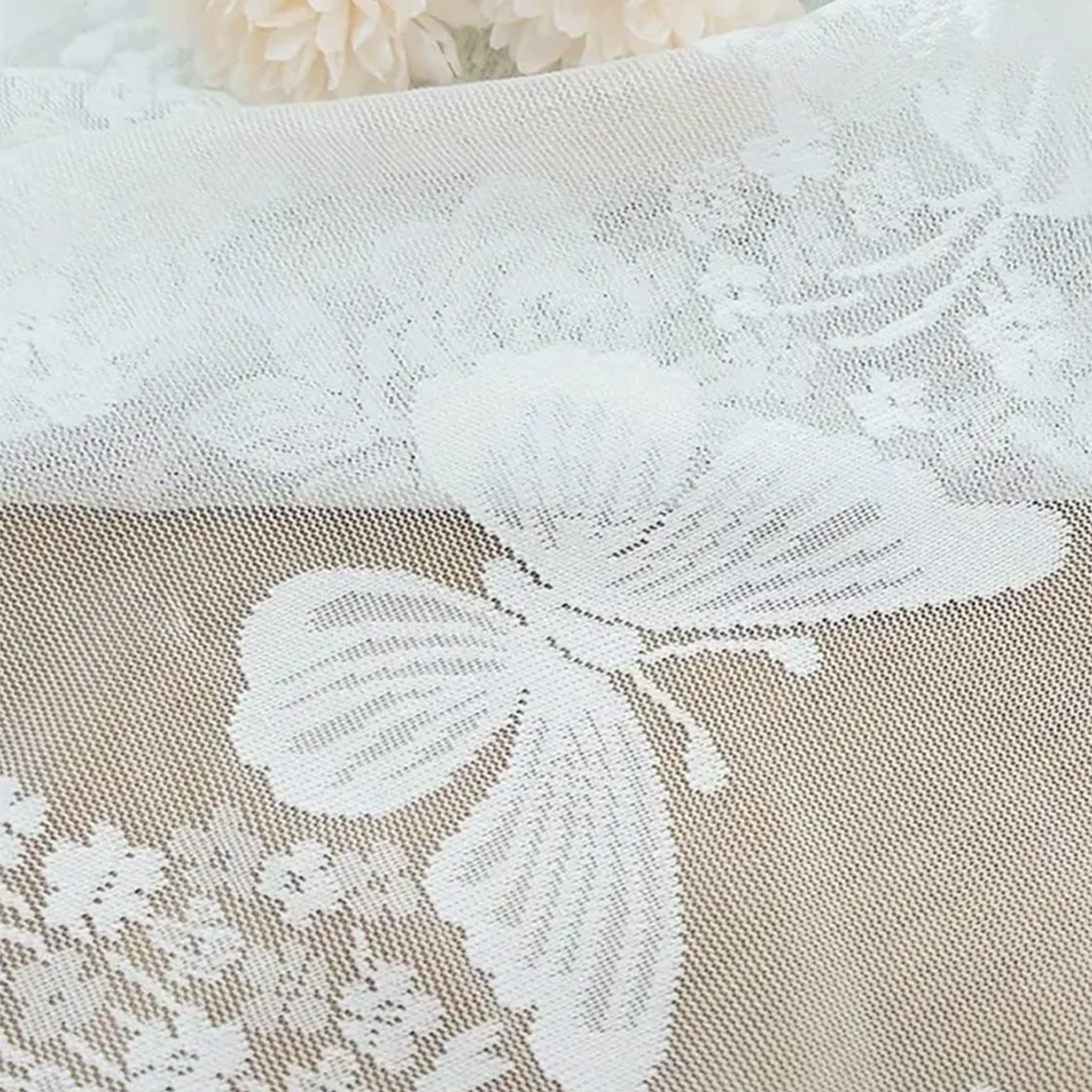 Nuevo encaje tejido por urdimbre transfronterizo, flor de amor de mariposa, cortina de pantalla de ventana, cortina de café, cortina de partición de cocina, TEMU