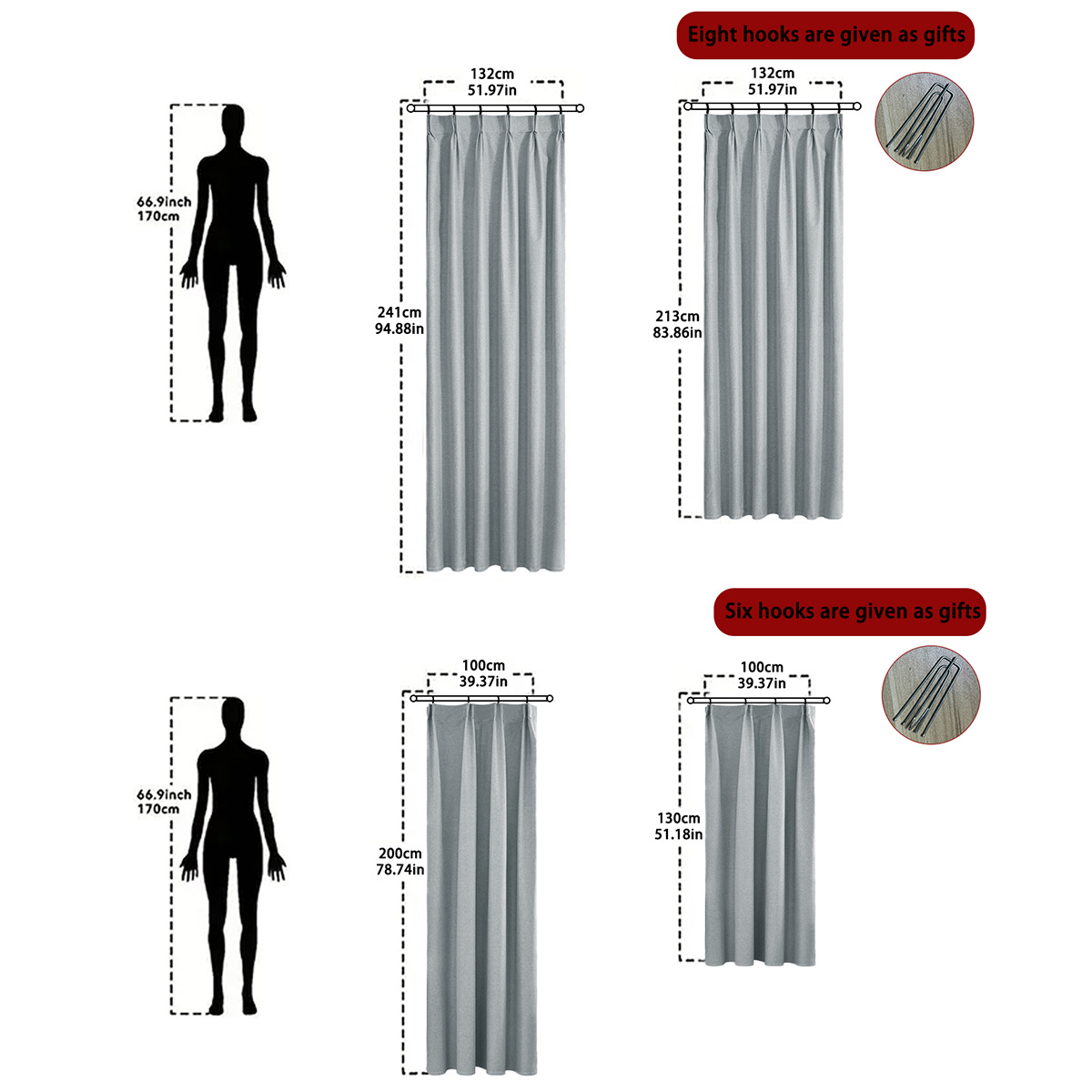 | Especificaciones | 100*130cm (una pieza de gancho),100*200cm (una pieza de gancho),132*213cm (una pieza de gancho),132*241cm (una pieza de gancho) |