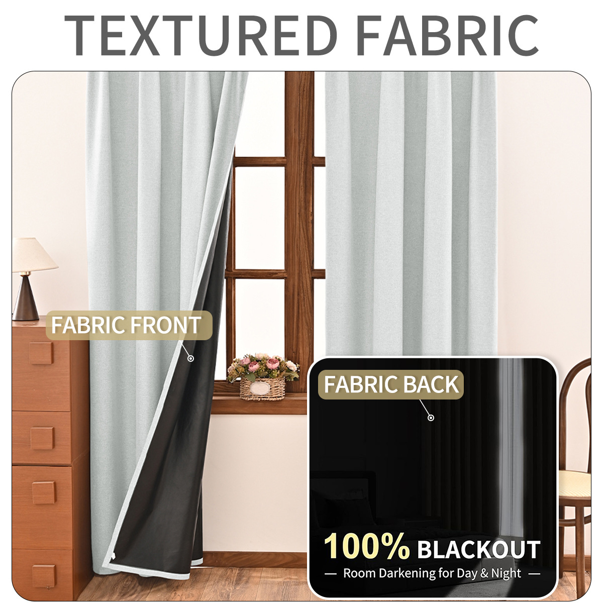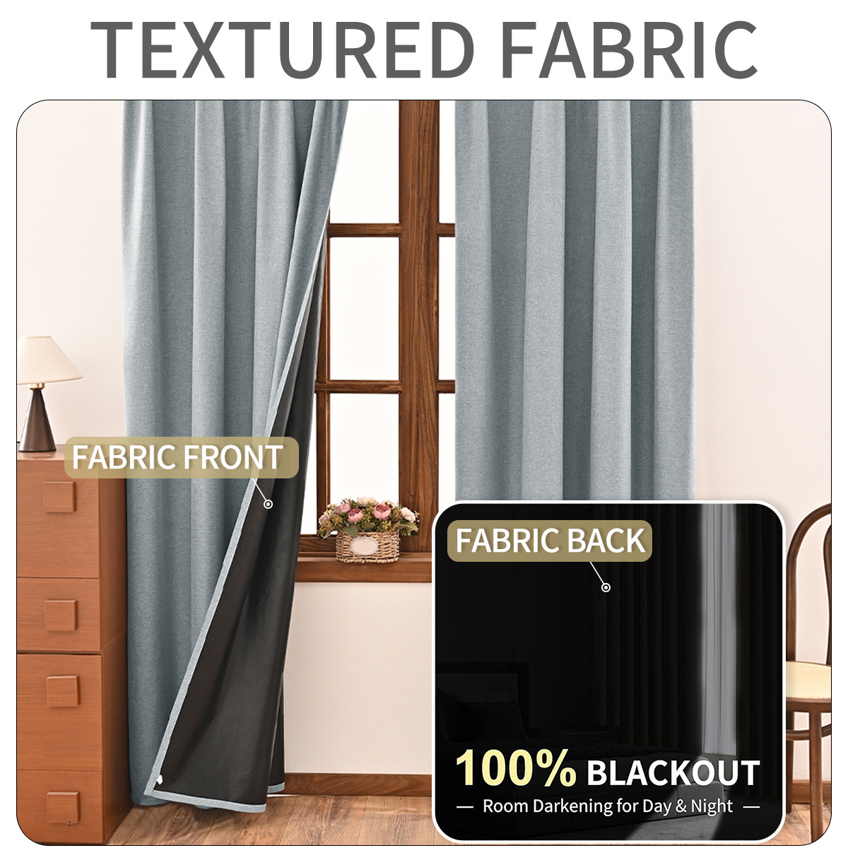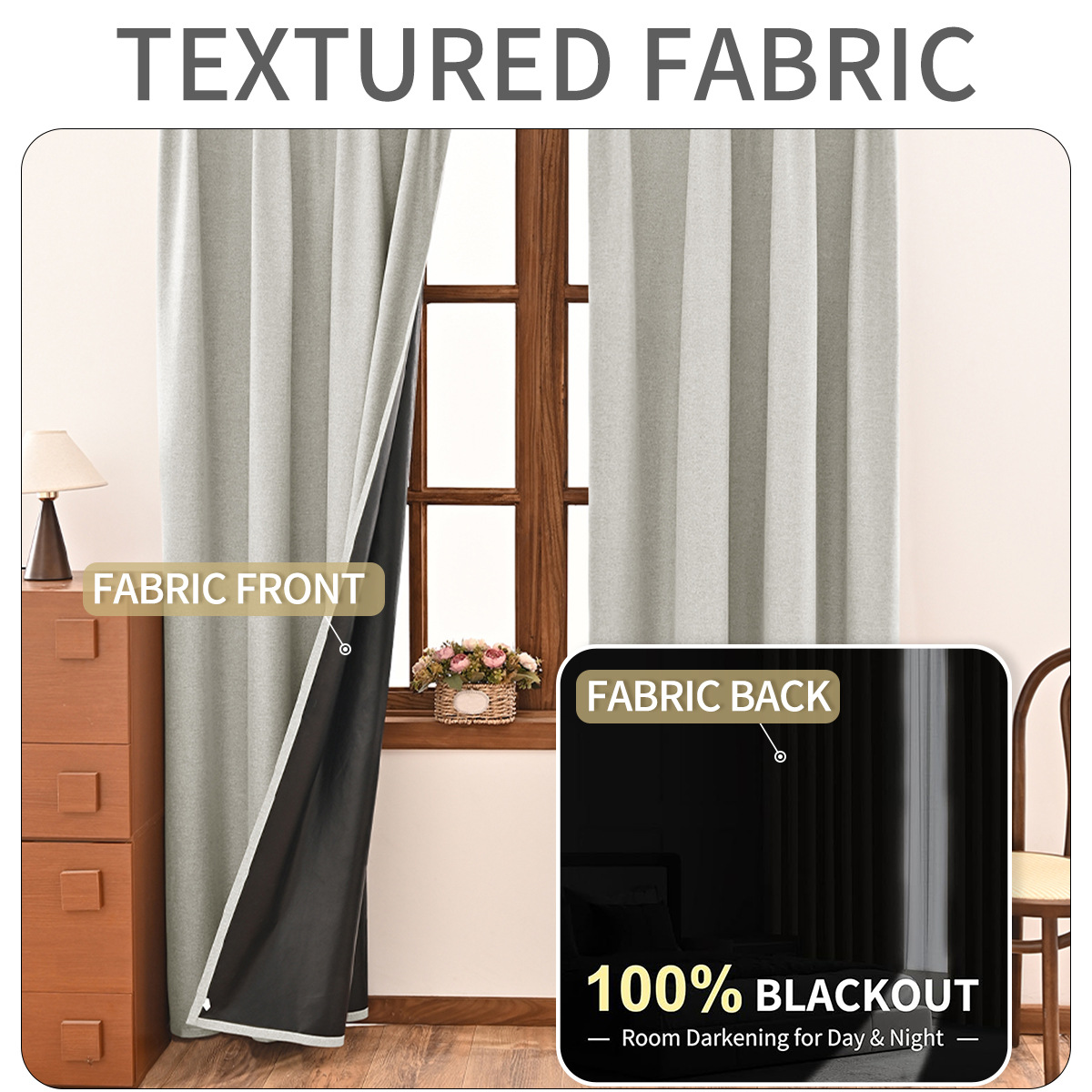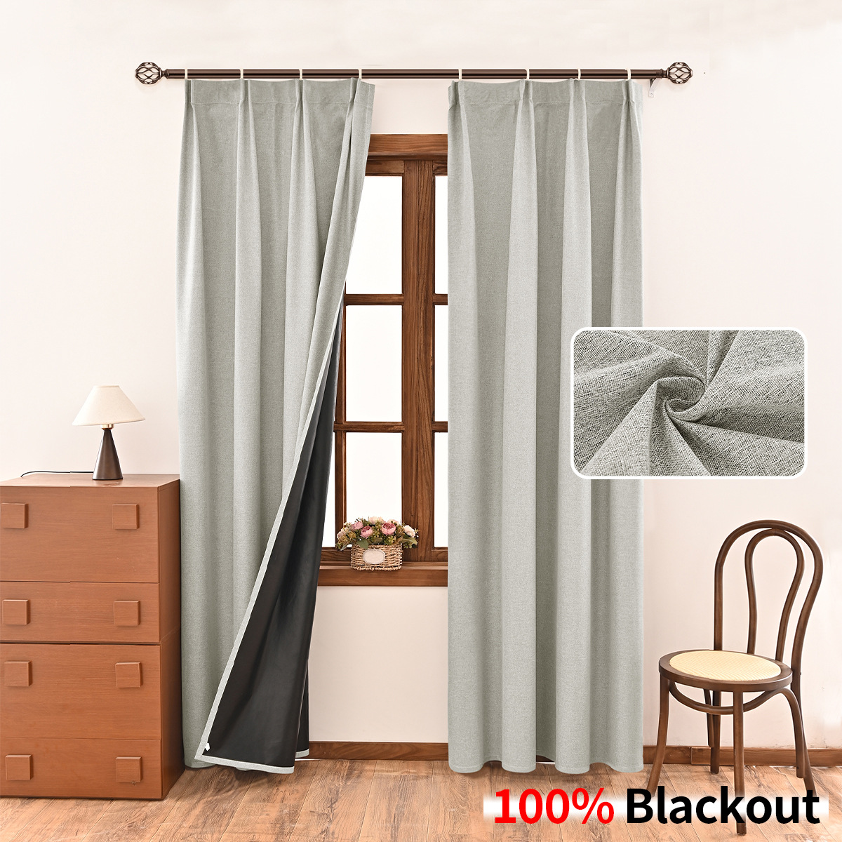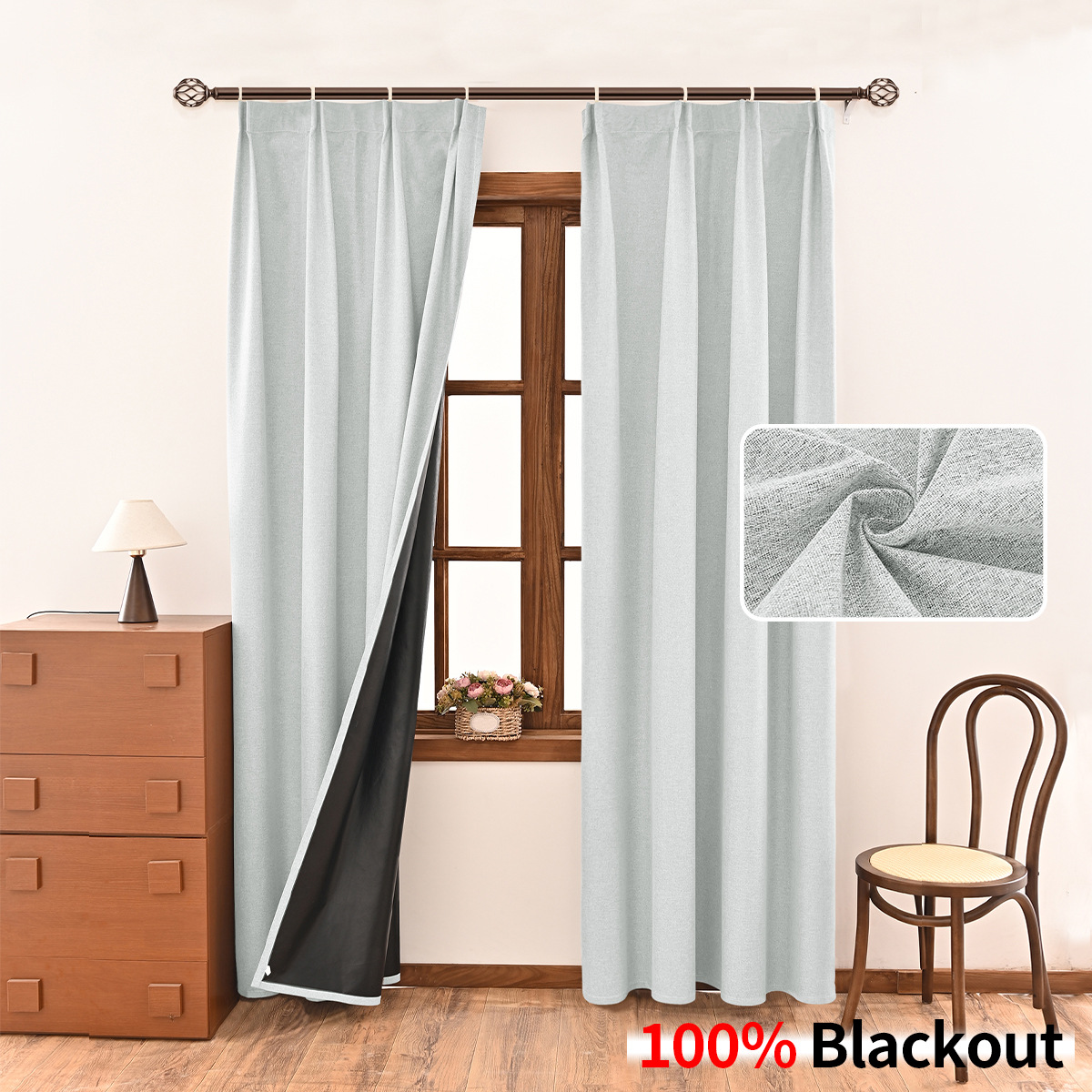 | Número de artículo | Gancho de cortina totalmente opacas con fondo negro de lino liso |