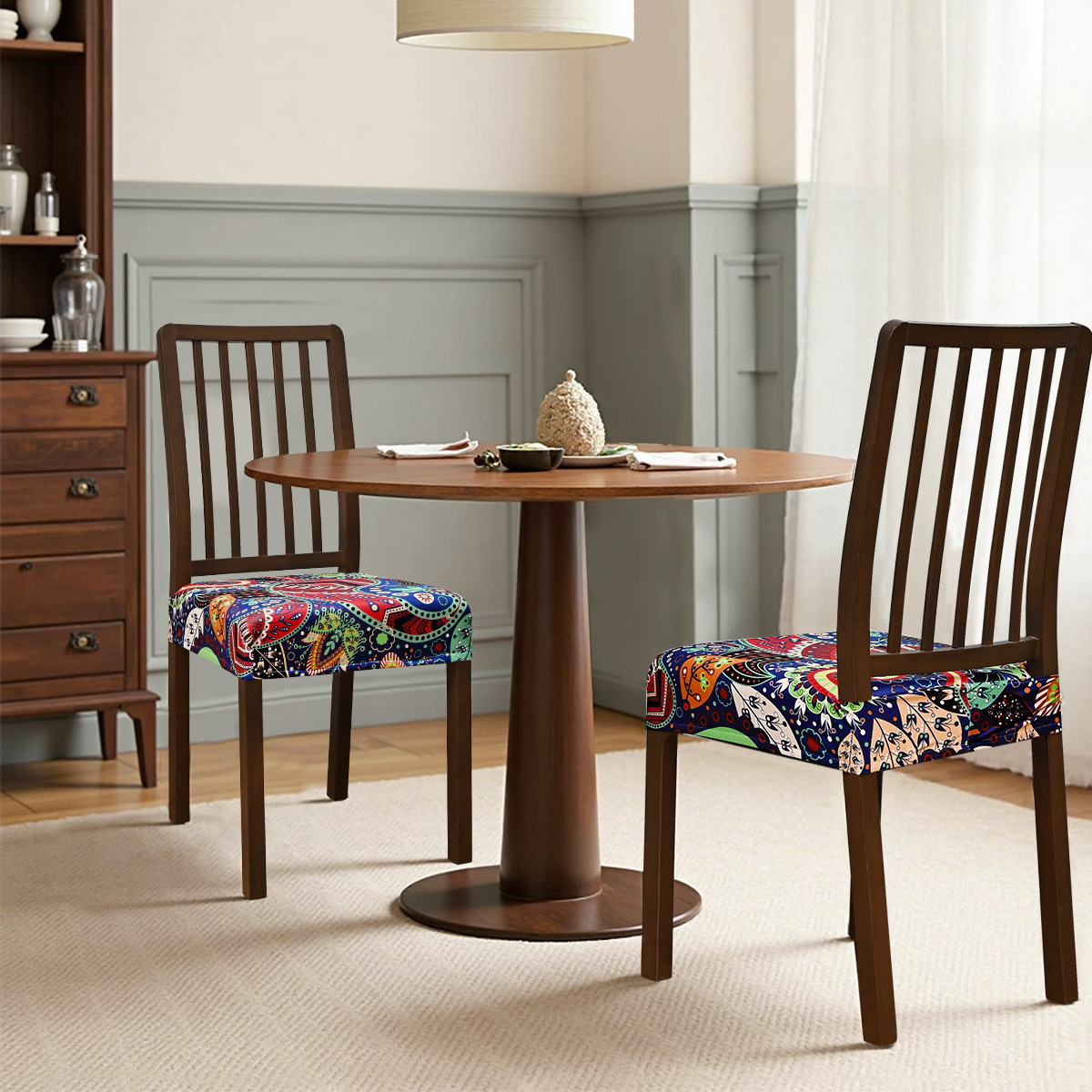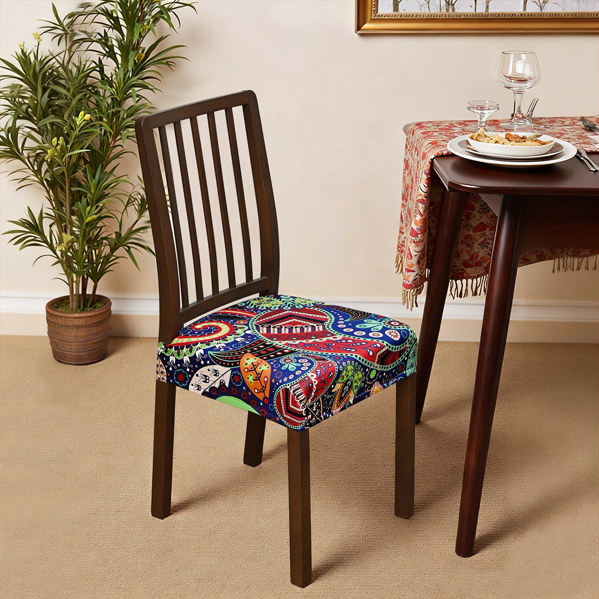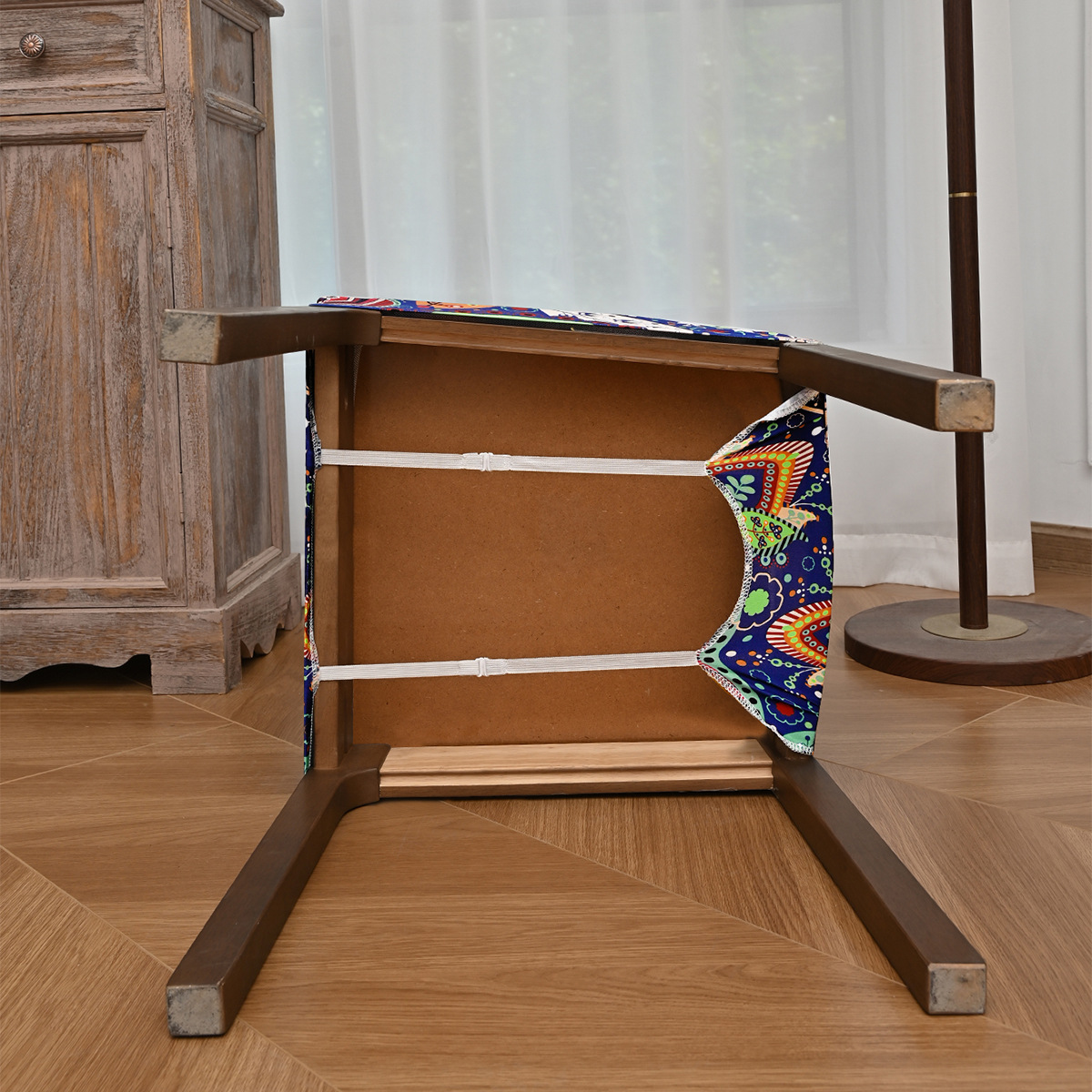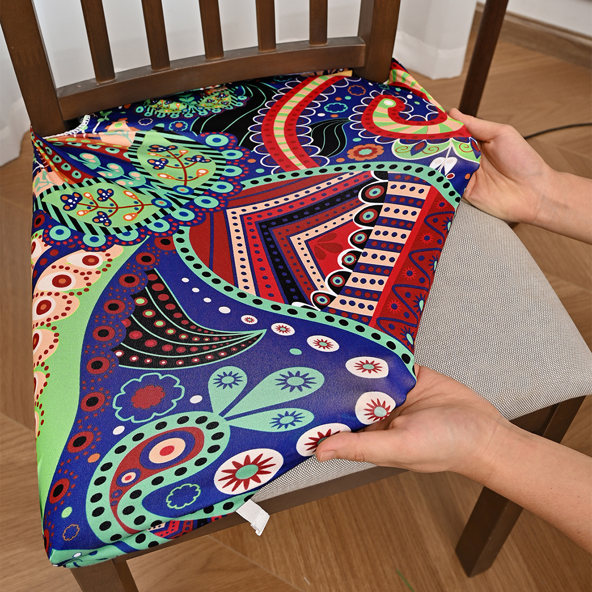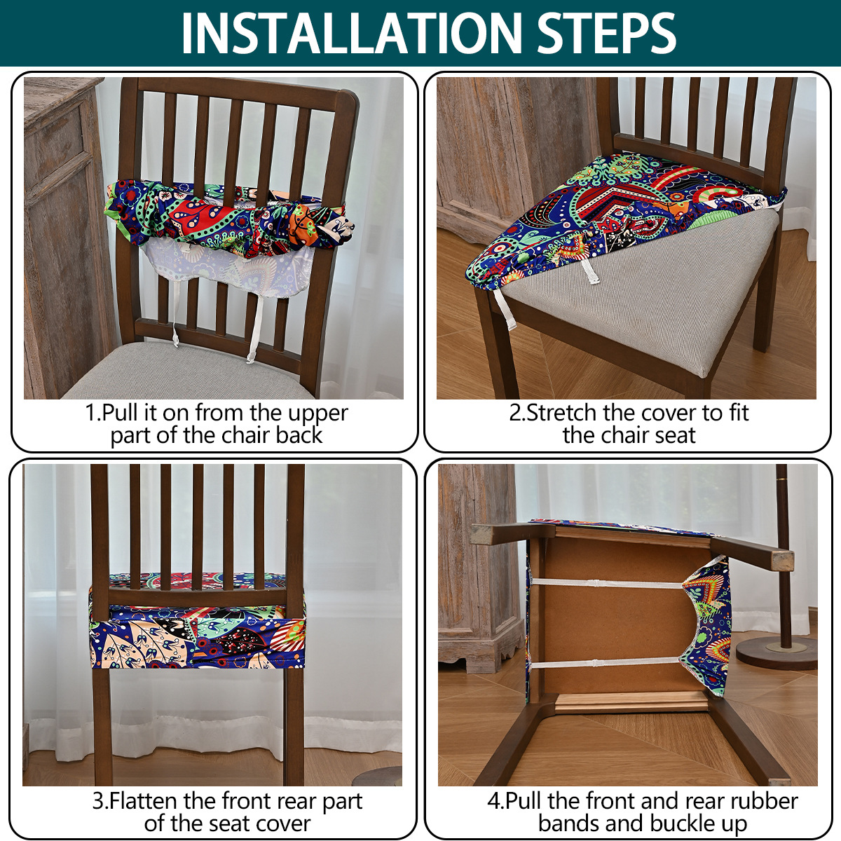 Nuevo transfronterizo elástico a prueba de agua anacaju flor doble taburete elástico cubierta de silla con lengua de hebilla cubierta de taburete impresa antideslizante