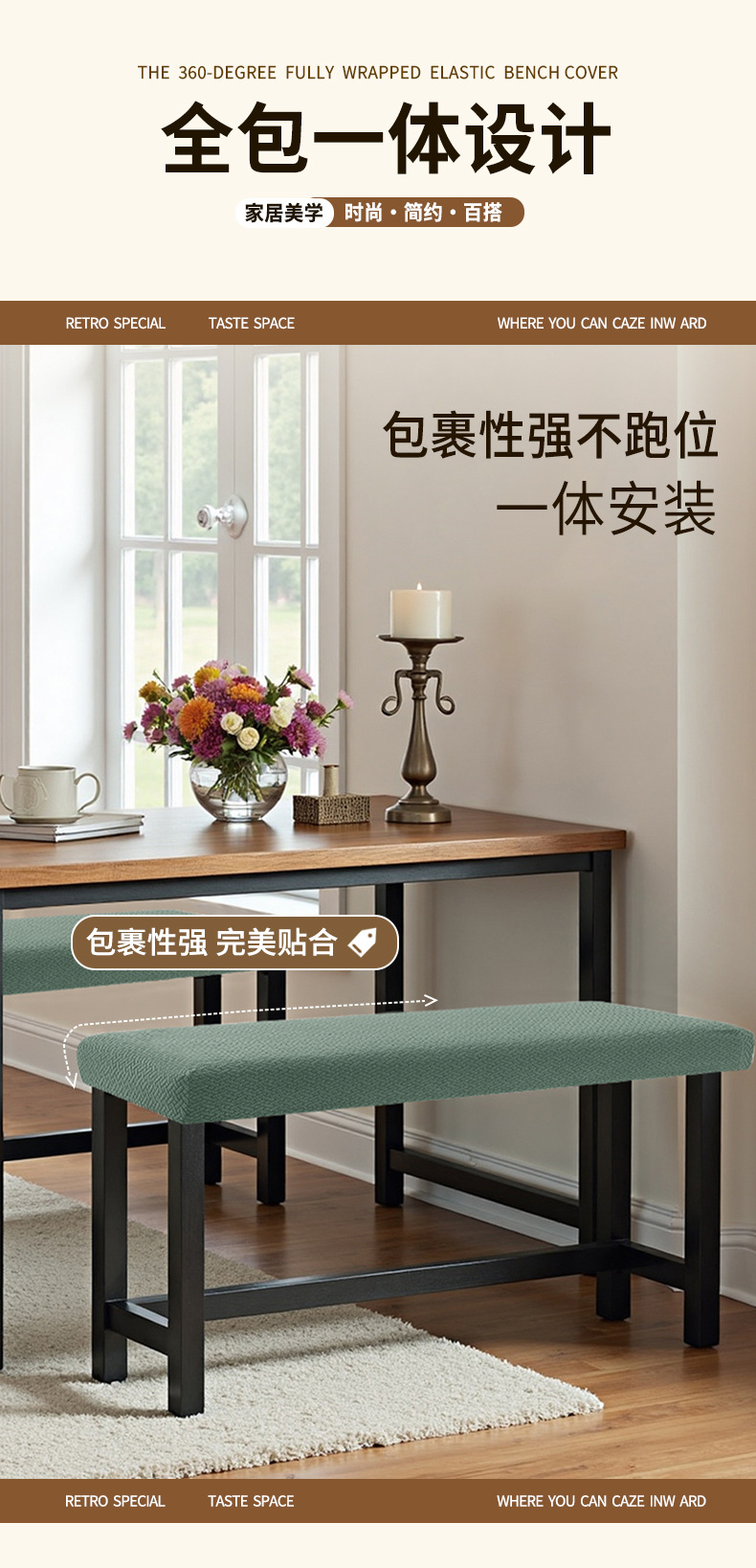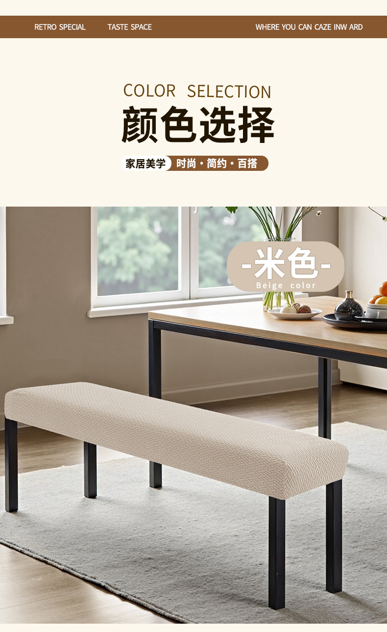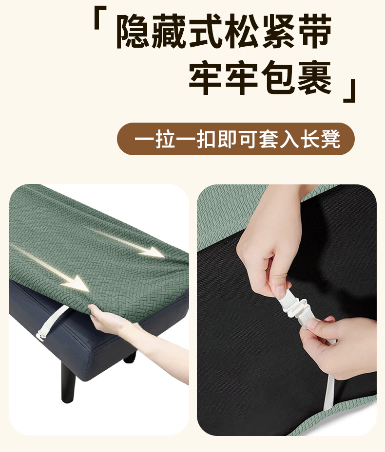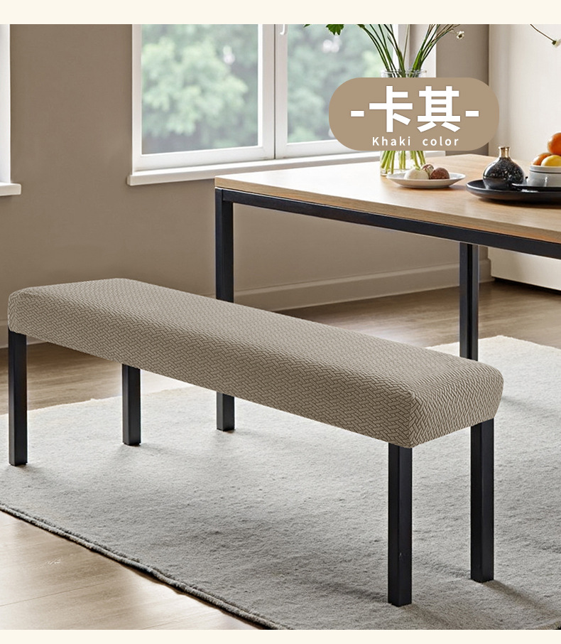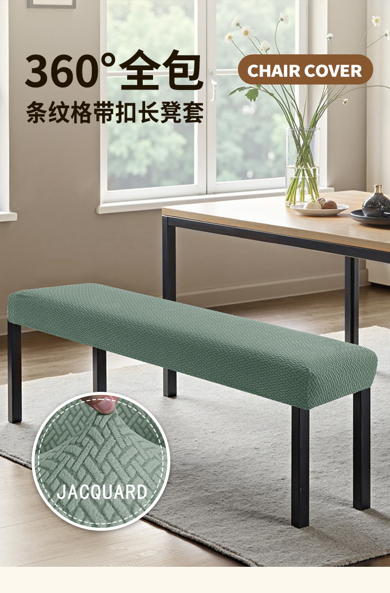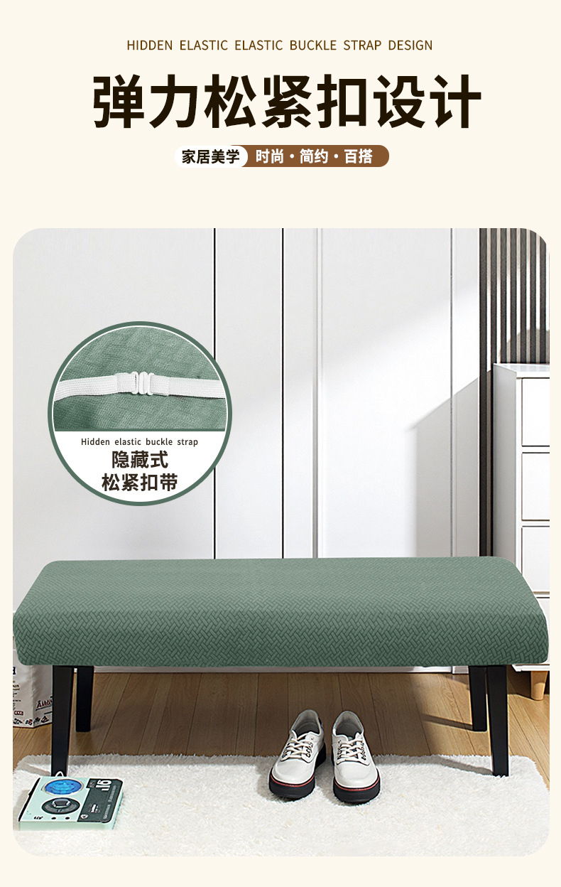 Tejido transfronterizo jacquard en forma de T patrón de rayas cubierta de taburete larga con hebilla, hotel elástico grueso, cambio de zapatos, paquete de taburete, cubierta de silla