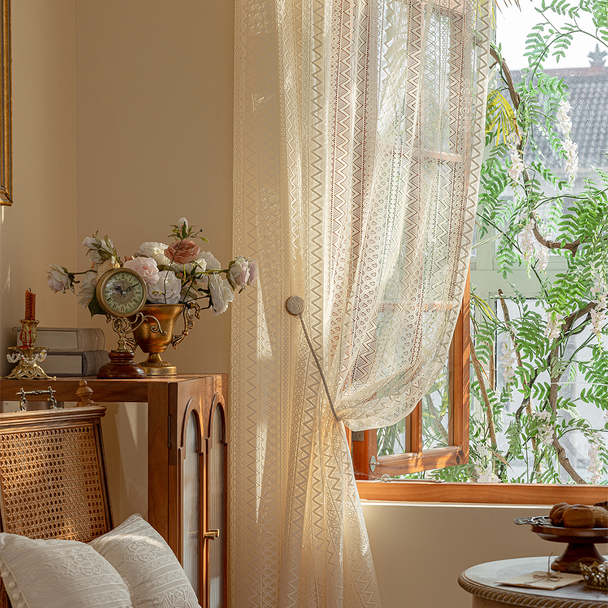 | Color | Encaje triangular ondulado - beige, encaje floral en letras minúsculas (consulta de imágenes de flores de servicio al cliente) |