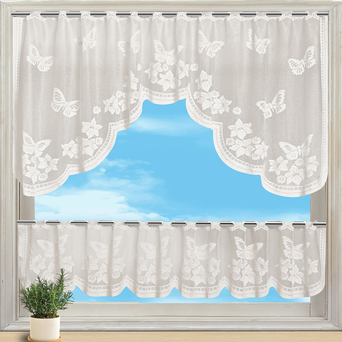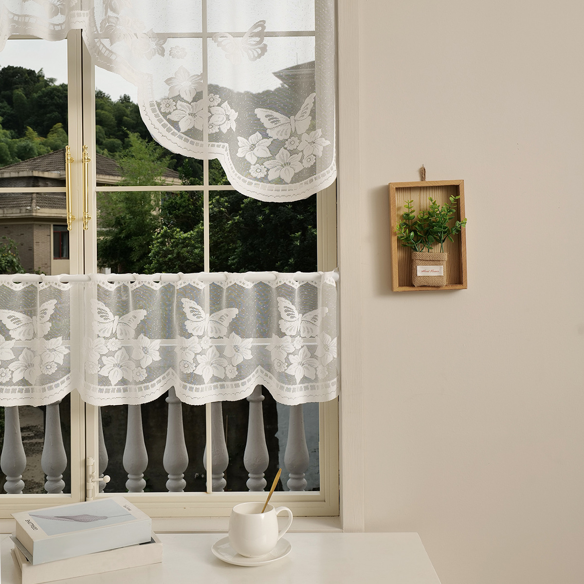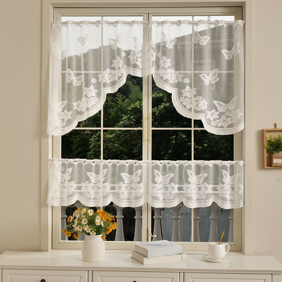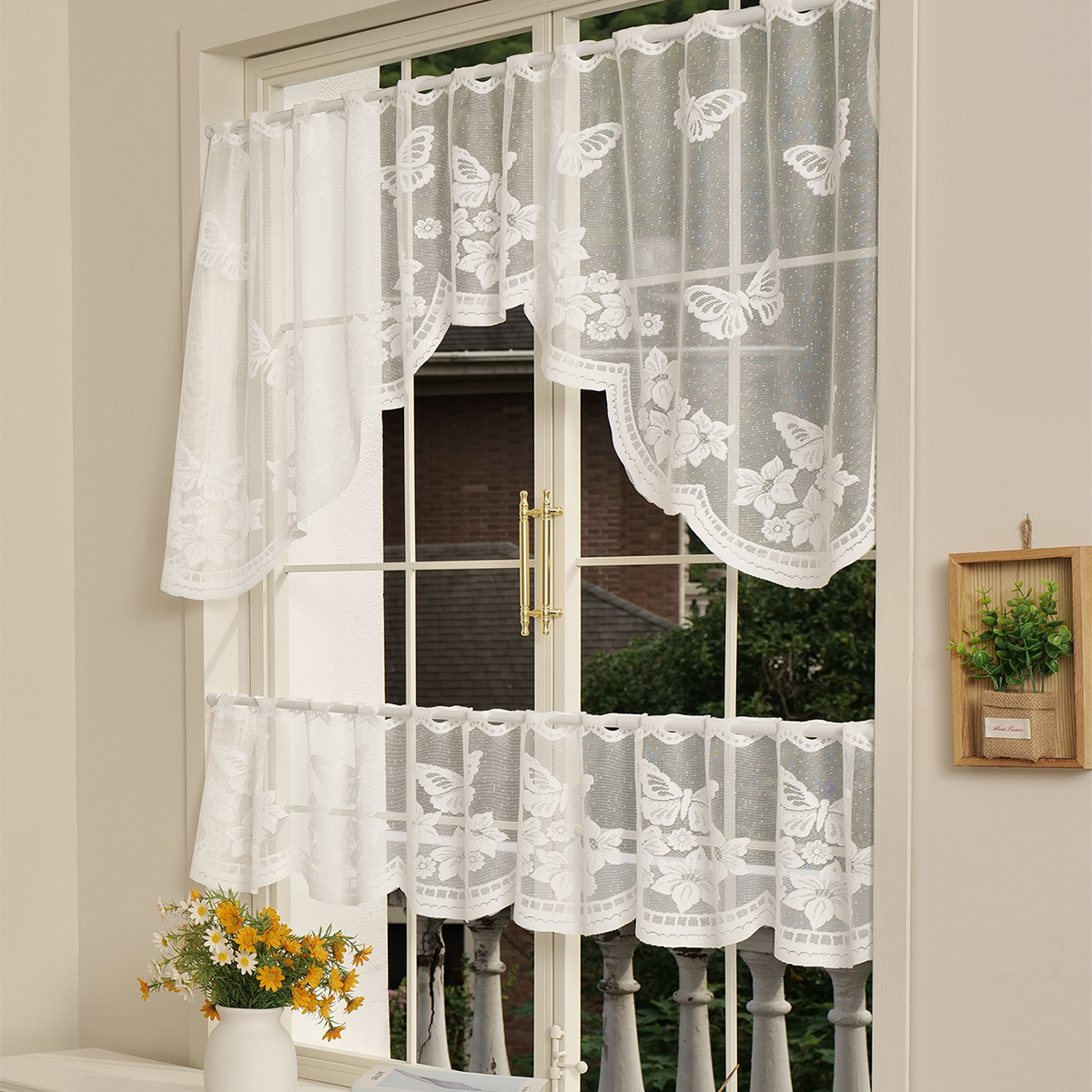 | Color | Media cortina de flores de sombra de mariposa, media cortina de flores de enredadera, media cortina de Flores rotas en blanco, media cortina de flores soleadas |