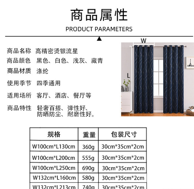 | Especificaciones | 100*130cm (una pieza perforada),100*200cm (una pieza perforada),100*250cm (una pieza perforada),132*160cm (una pieza perforada),132*213cm (una pieza perforada),132*241cm (una pieza perforada) |