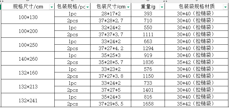 | Especificaciones | 100 * 130cm (una pieza perforada), 100 * 200cm (una pieza perforada), 100 * 250cm (una pieza perforada), 132 * 160cm (una pieza perforada), 132 * 213cm (una pieza perforada), 132 * 241cm (una pieza perforada), 140 * 260cm (una pieza perforada) |