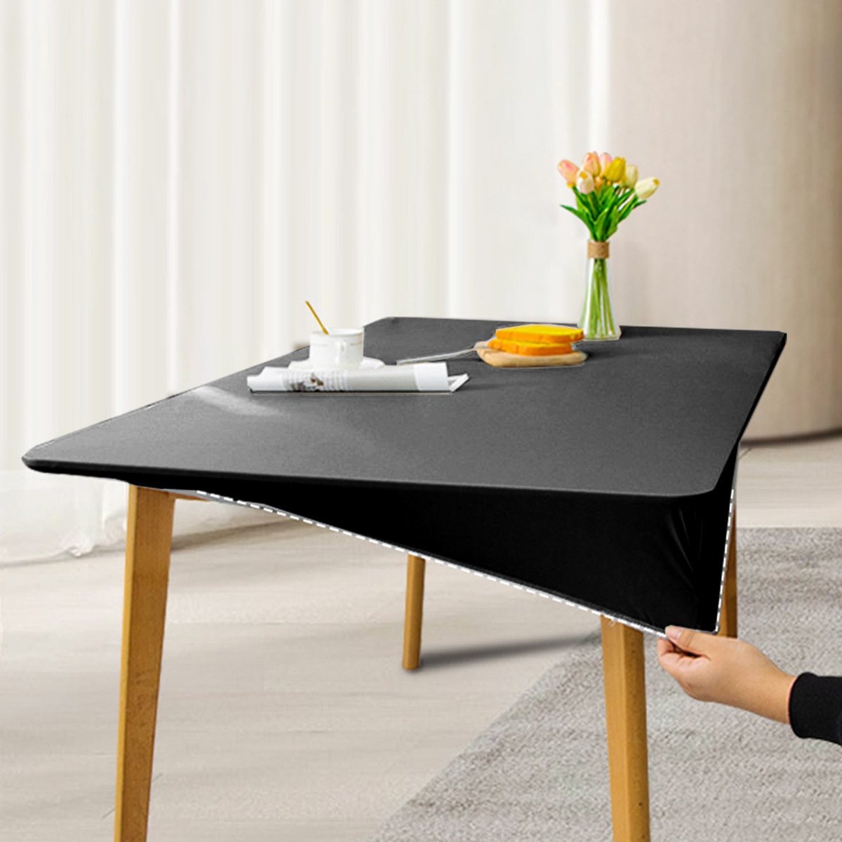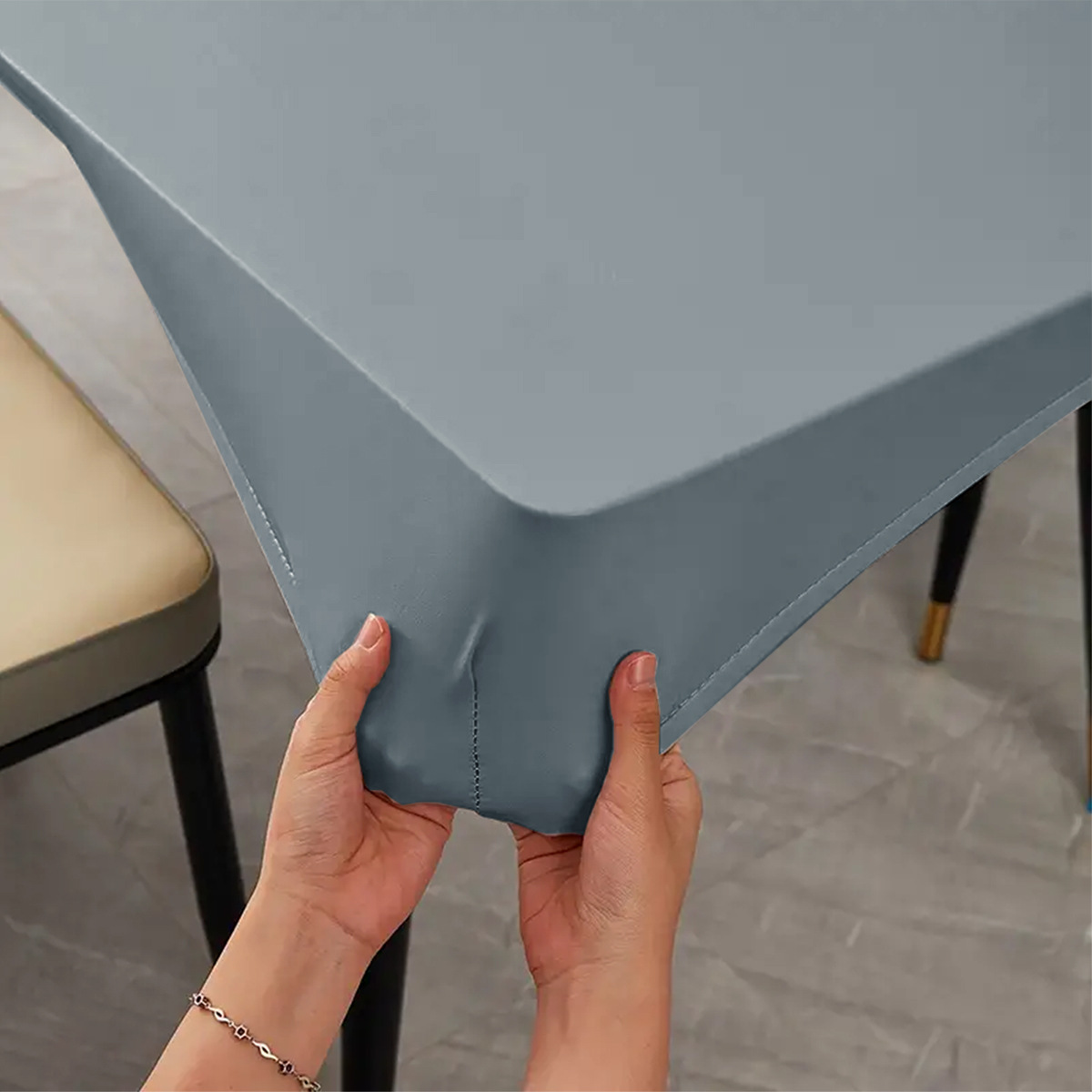 Moderno simple PU impermeable a prueba de agua a prueba de aceite cubierta de mesa de color sólido elástico antideslizante toal de mesa de comedor doméstico transfronterizo toal de mesa TEMU