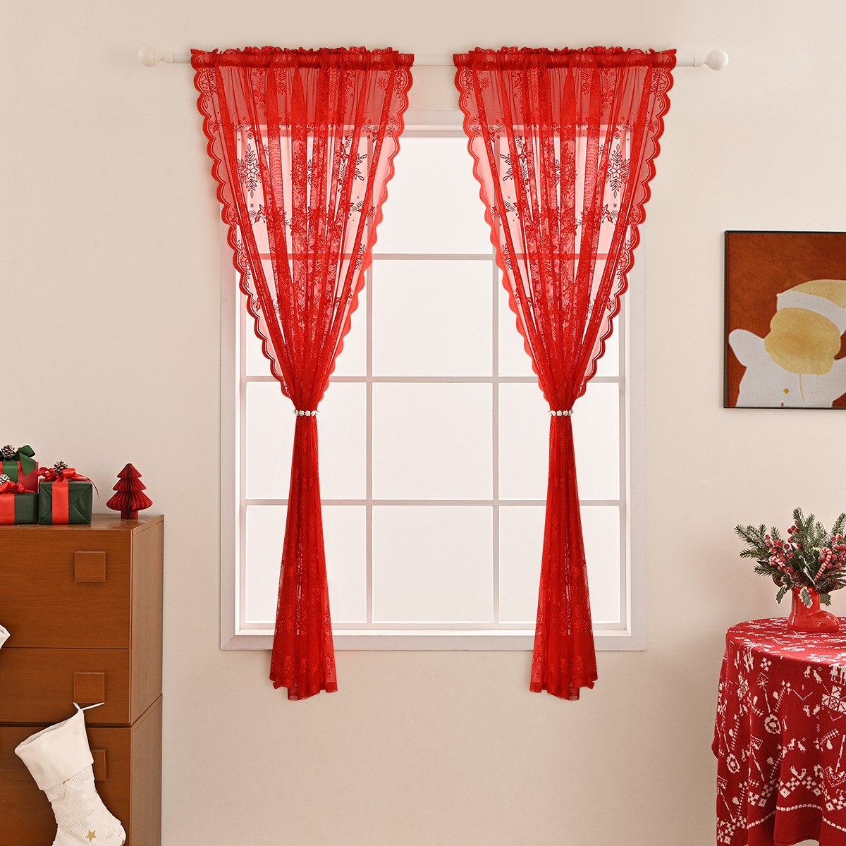 Nuevo espejo transfronterizo copo de nieve ventana de tela de barra de presión de hilo de encaje de acero cortinas de sombra decoración de sala de estar TEMU