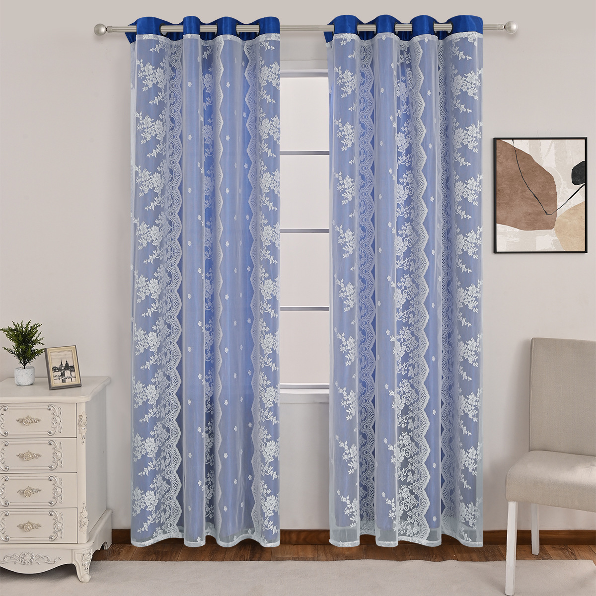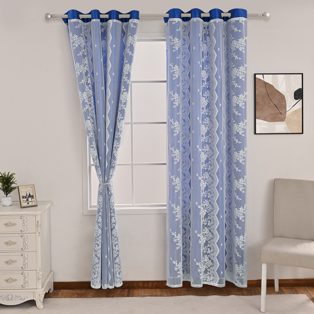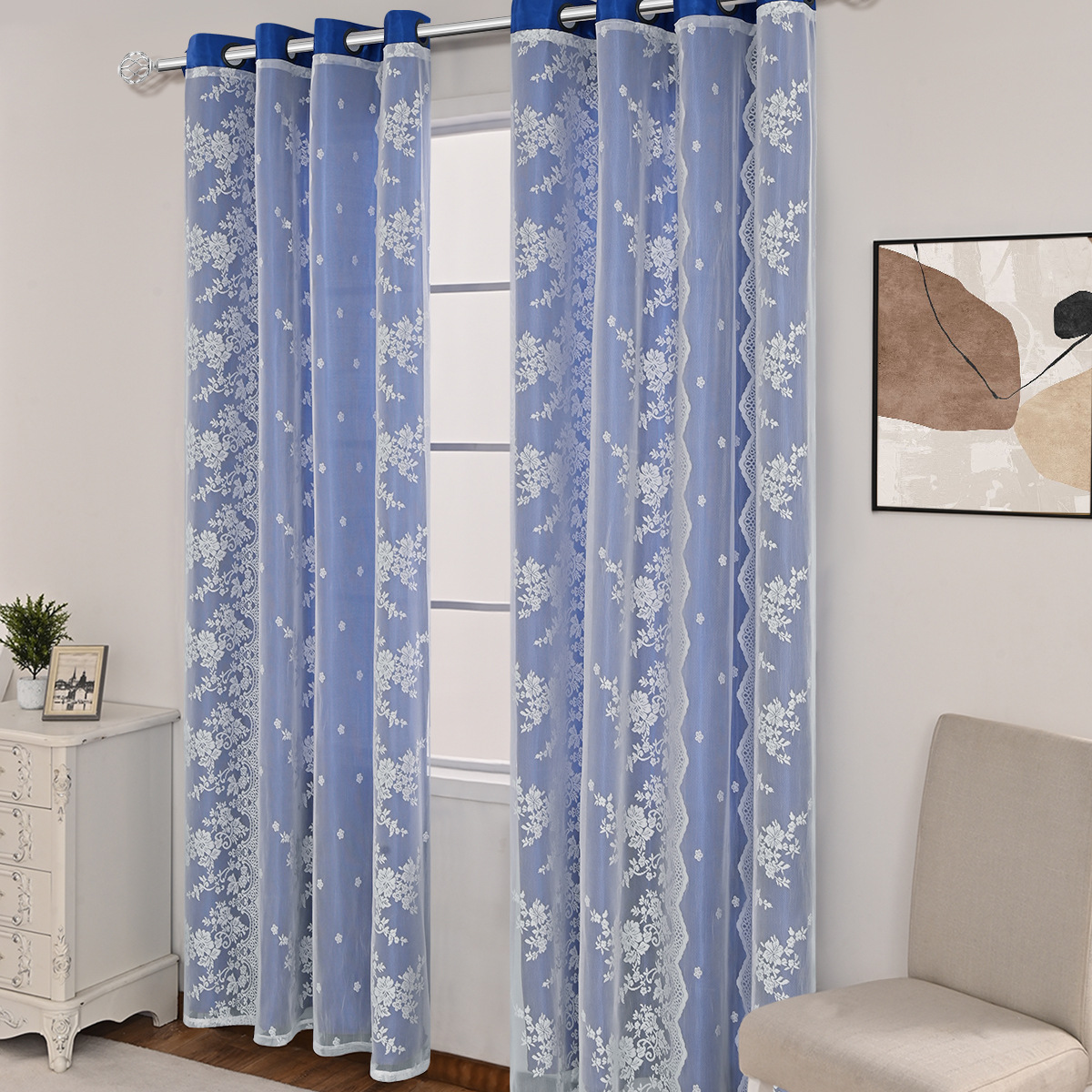 Nuevo transfronterizo de tres filas de flores de doble cortina de sombra cortina de sala de estar dormitorio cortina terminada al por mayor TEMU