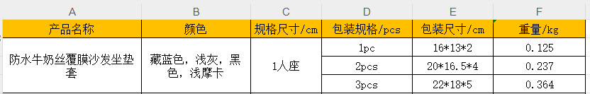 | Número de artículo | La cubierta del cojín del sofá cubierta con seda de leche impermeable es universal. |
