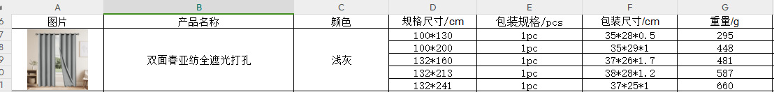 100 * 130 cm (una pieza perforada), 100 * 200 cm (una pieza perforada), 132 * 160 cm (una pieza perforada), 132 * 213 cm (una pieza perforada), 132 * 241 cm (una pieza perforada)