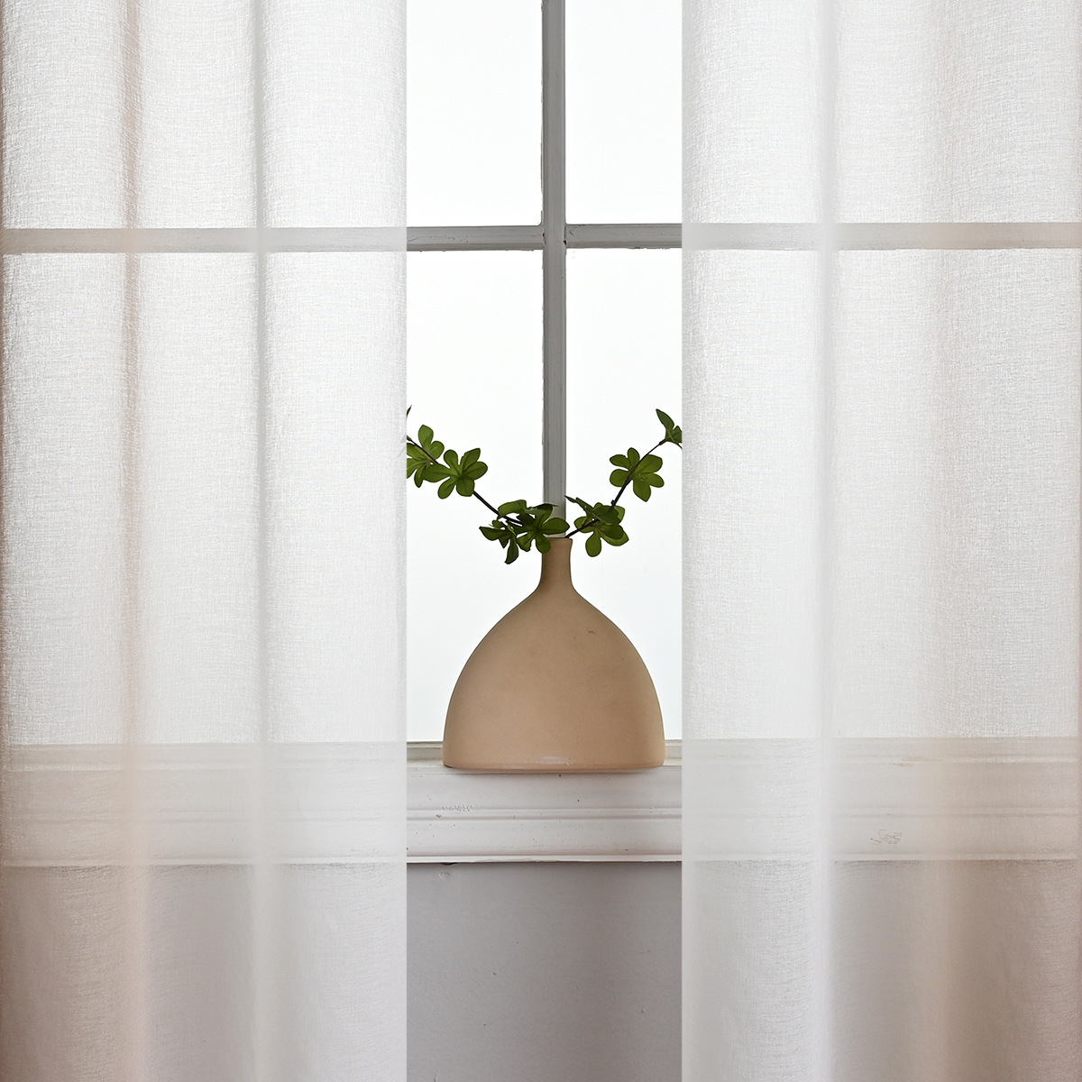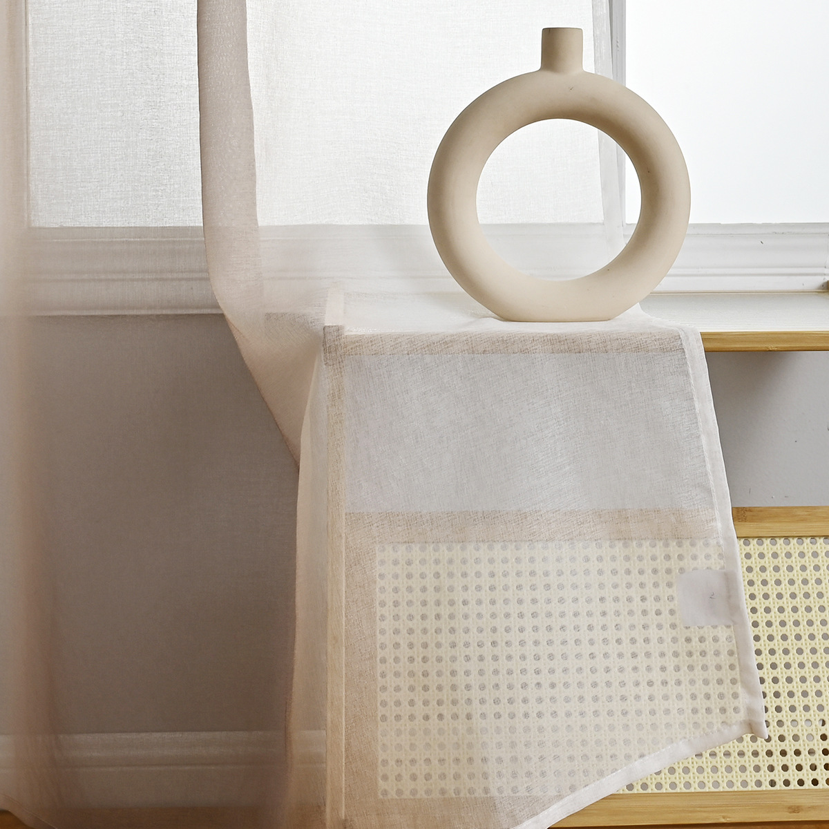 Cortina de gasa de lino retro, transparente e impermeable, ventana salediza de la sala de estar, color crema, algodón y lino, gasa, ventana de lino de viento silencioso