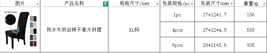 | Número de artículo | Cubierta de silla de seda de leche impermeable Código XL |