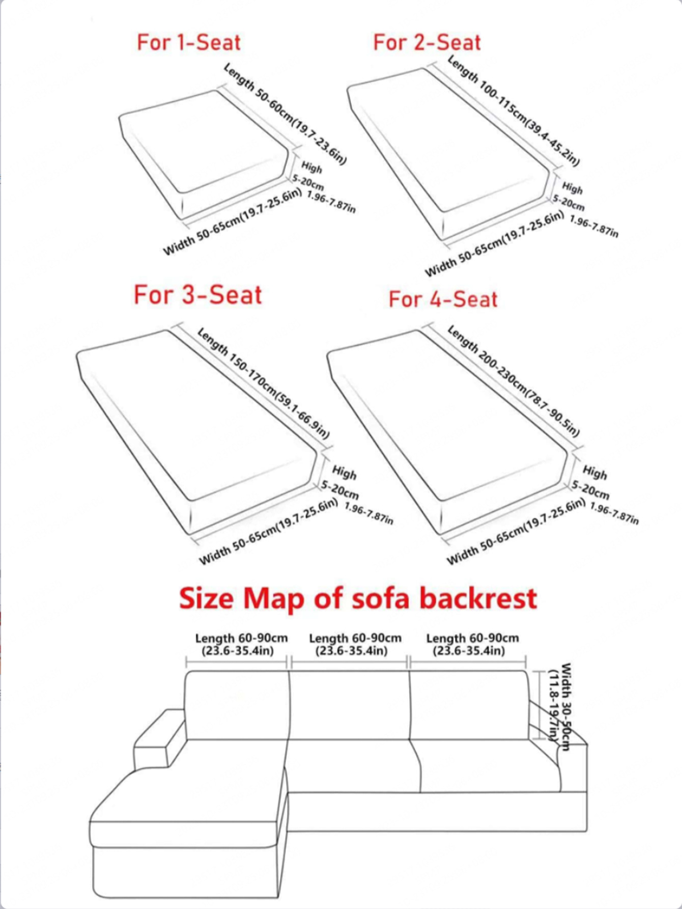 | Tamaño | Asiento individual, asiento doble, asiento cuatro, cubierta trasera del sofá |