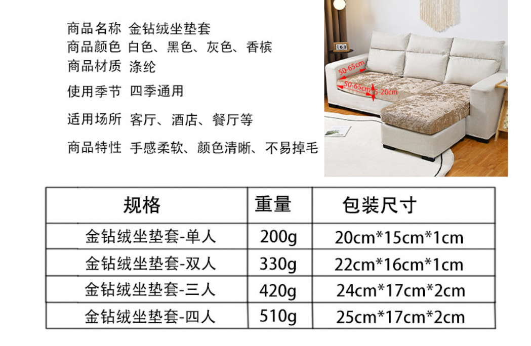 Invierno nuevo invierno de invierno de esponja cojín de sofá cubierta de tela transfronteriza