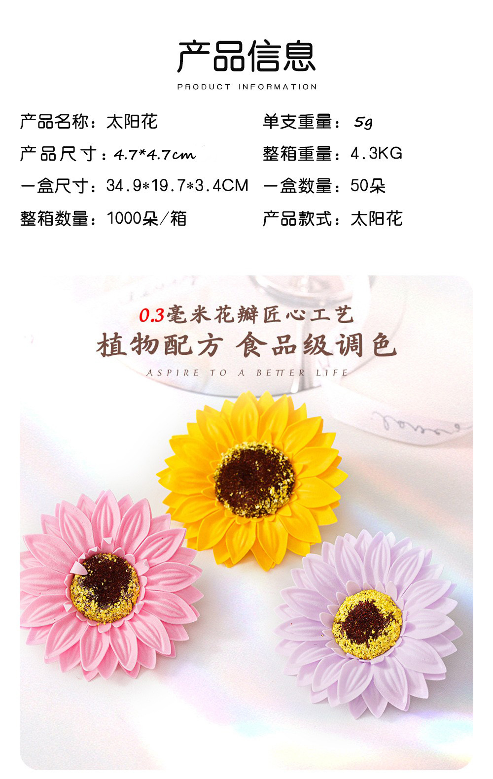 | Color | Mini Sunflower naranja, mini Sunflower lilac |