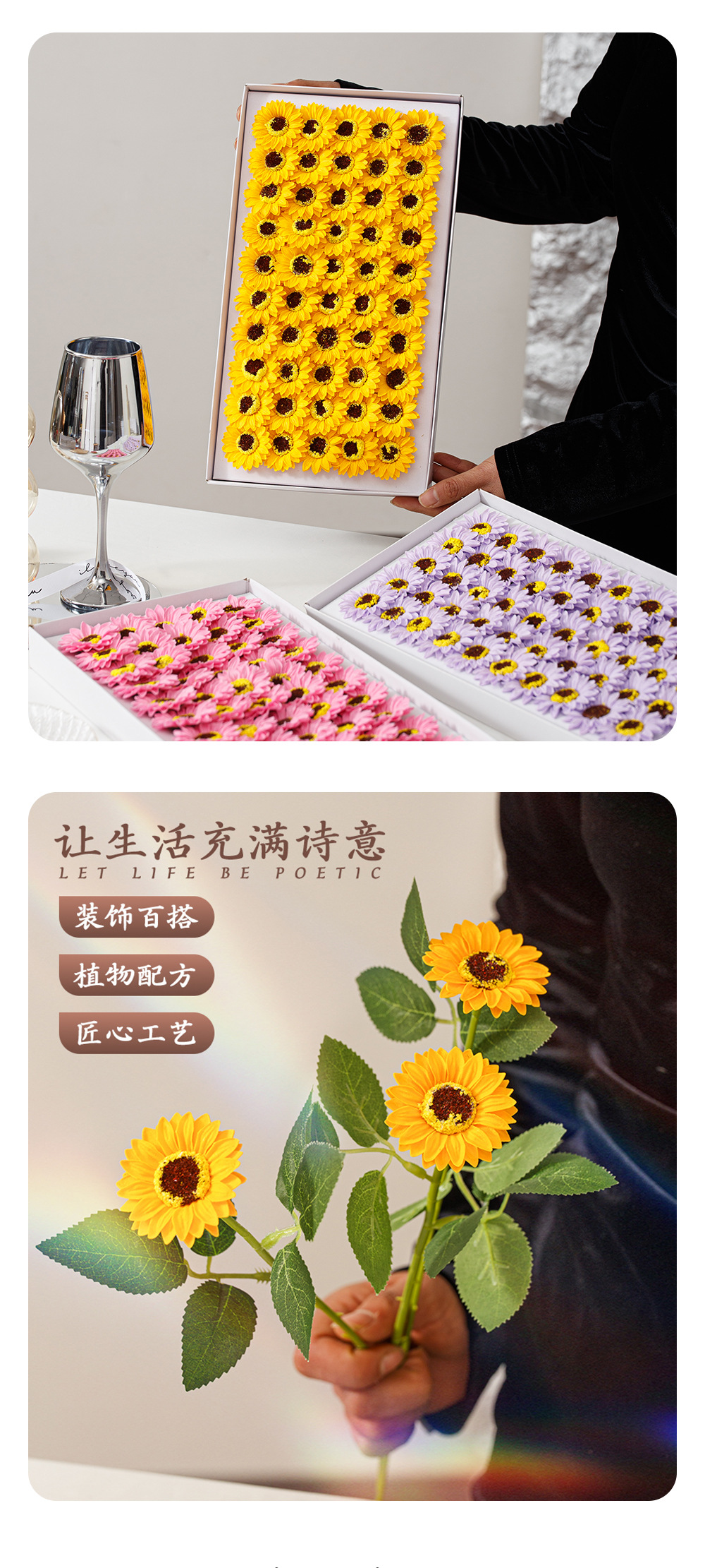 | Material | Flor de jabón, flor de la vida eterna |