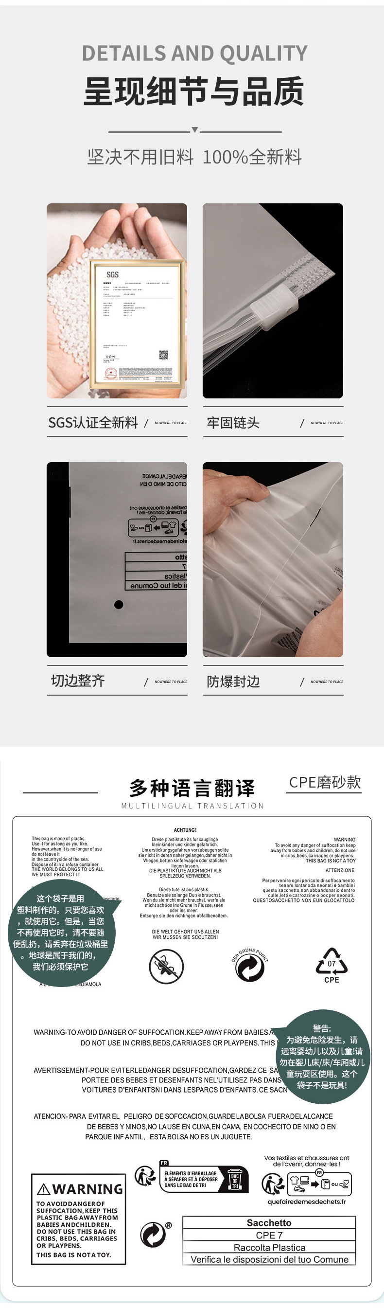 | Bolso con cremallera de advertencia | Bolsa con cremallera esmerilada |