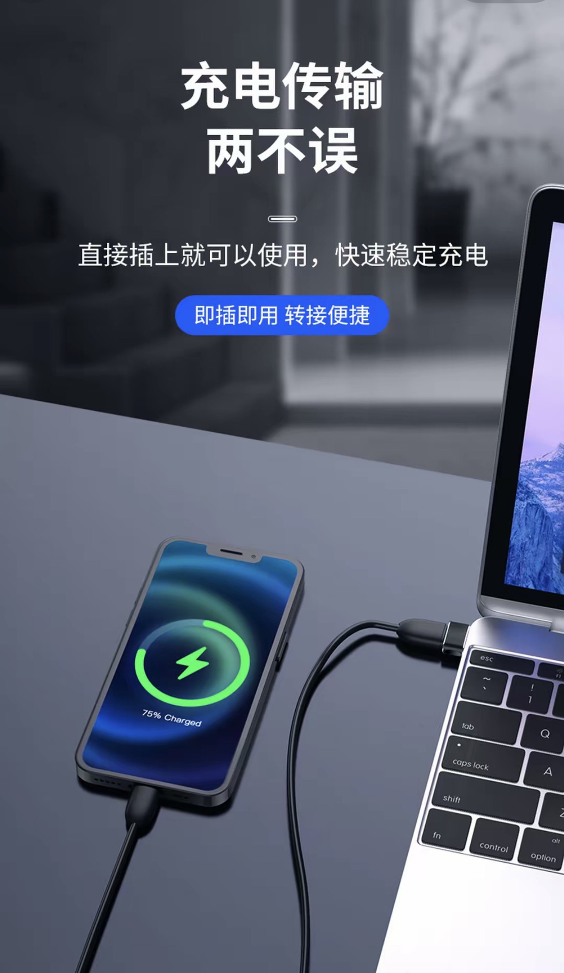 typec转usb转接头具有快充和数据传输功能