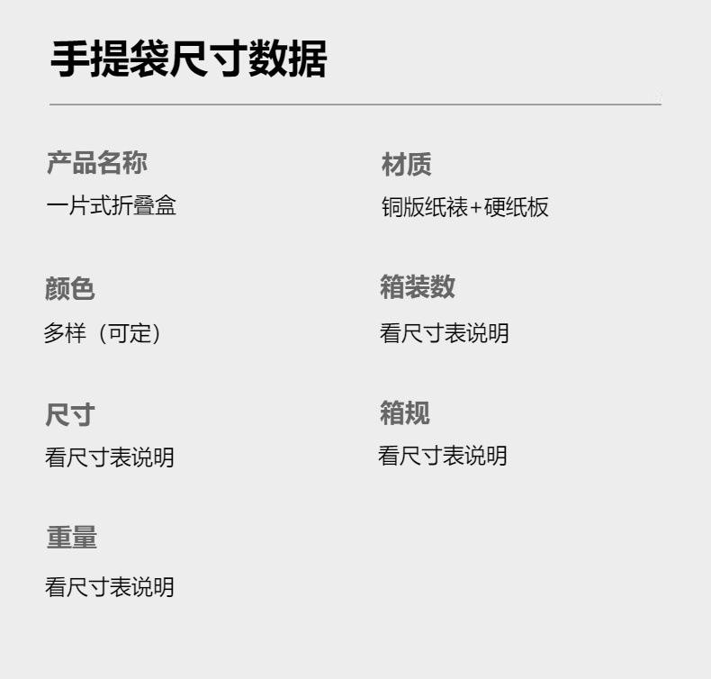 | Color | Caja plegable beige (logotipo se puede fijar), Caja plegable rosa (logotipo se puede fijar), Caja plegable negra (logotipo se puede fijar), Caja plegable azul (logotipo se puede fijar), Caja plegable Roja (logotipo se puede fijar), Caja plegable blanca (logotipo se puede fijar) |