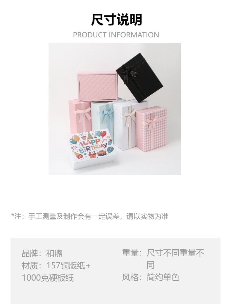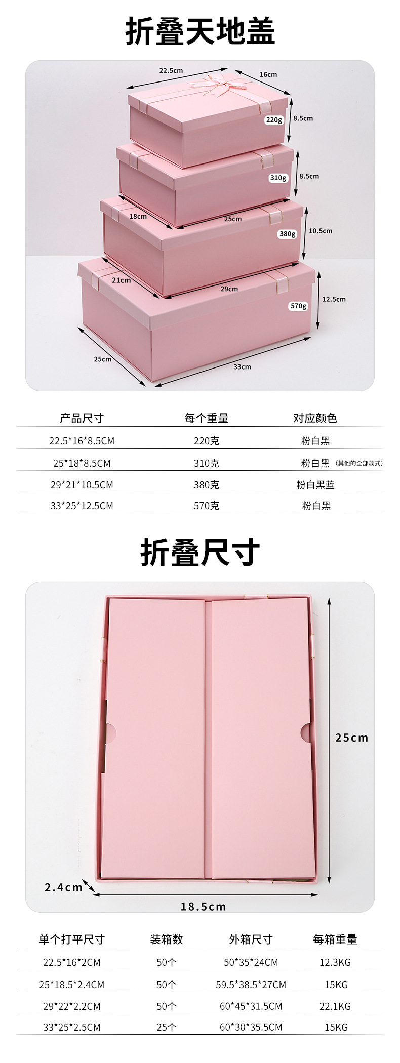 | Especificaciones y modelos | Tapa plegable del cielo y la tierra (rosa); 22.5 * 16 * 8.5, tapa plegable del cielo y la tierra (rosa); 25 * 18 * 8,5, tapa plegable del cielo y la tierra (rosa); 29 * 21 * 10.5, tapa plegable del cielo y la tierra (rosa); 33 * 25 * 12.5, tapa plegable del cielo y la tierra (blanco); 22.5 * 16 * 8.5, tapa plegable del cielo y la tierra (blanco); 25 * 18 * 8,5, tapa plegable del cielo y la tierra (blanco); 29 * 21 * 10.5, tapa plegable del cielo y la tierra (blanca); 33 * 25 * 12.5, tapa plegable del cielo y la tierra (negro); 22.5 * 16 * 8.5, tapa plegable del cielo y la tierra (negro); 25 * 18 * 8,5, tapa plegable del cielo y la tierra (negro); 29 * 21 * 10.5, tapa plegable del cielo y la tierra (negro); 33 * 25 * 12.5, tapa plegable del cielo y la tierra (azul); 29 * 21 * 10.5, cubierta plegable del cielo y la tierra (rosa) celosía de diamante; 25 * 18 * 8,5, tapa plegable del cielo y la tierra (celosía de diamante negro); 25 * 18 * 8,5, tapa plegable del cielo y la tierra (celosía de diamante verde); 25 * 18 * 8,5, tapa plegable del cielo y la tierra (celosía de diamante blanco); 25 * 18 * 8,5, celosía impresa con tapa plegable del cielo y la tierra (rosa); 25 * 18 * 8,5, celosía impresa con tapa plegable del cielo y la tierra (verde); 25 * 18 * 8,5, celosía impresa con tapa plegable del cielo y la tierra (negro); 25 * 18 * 8,5, celosía impresa con tapa plegable del cielo y la tierra (beige); 25 * 18 * 8,5, tapa plegable del cielo y la tierra (borde dorado rosa); 25 * 18 * 8,5, tapa plegable del cielo y la tierra (borde dorado negro); 25 * 18 * 8,5, tapa plegable del cielo y la tierra (borde blanco y negro); 25 * 18 * 8.5, tapa plegable del cielo y la tierra (cumpleaños); 25 * 18 * 8.5, tapa plegable del cielo y la tierra (sueño de cumpleaños); 25 * 18 * 8.5, tapa plegable del cielo y la tierra (dulce cumpleaños); 25 * 18 * 8,5 |