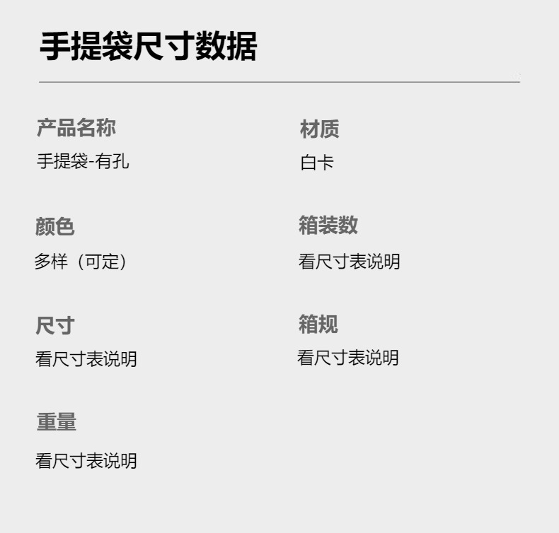 | Forma de la bolsa de papel | Bolsa de mano - versión horizontal - modelo vertical - con agujeros |