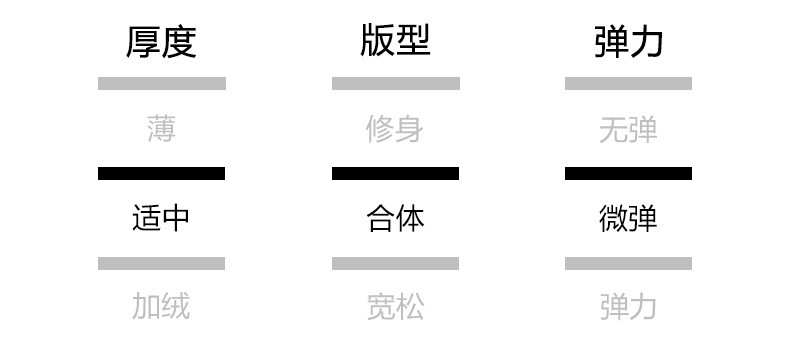 | Color | Cuello medio negro, cuello medio blanco, cuello medio albaricoque, cuello medio gris oscuro, cuello medio marrón, cuello redondo negro, cuello redondo blanco, cuello redondo albaricoque, cuello redondo gris oscuro, cuello redondo marrón |