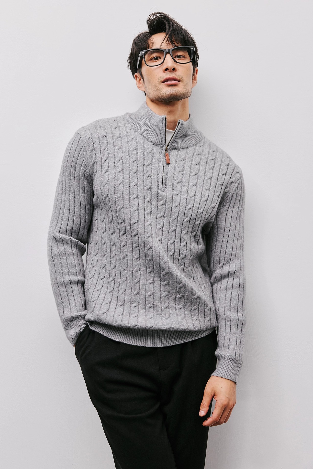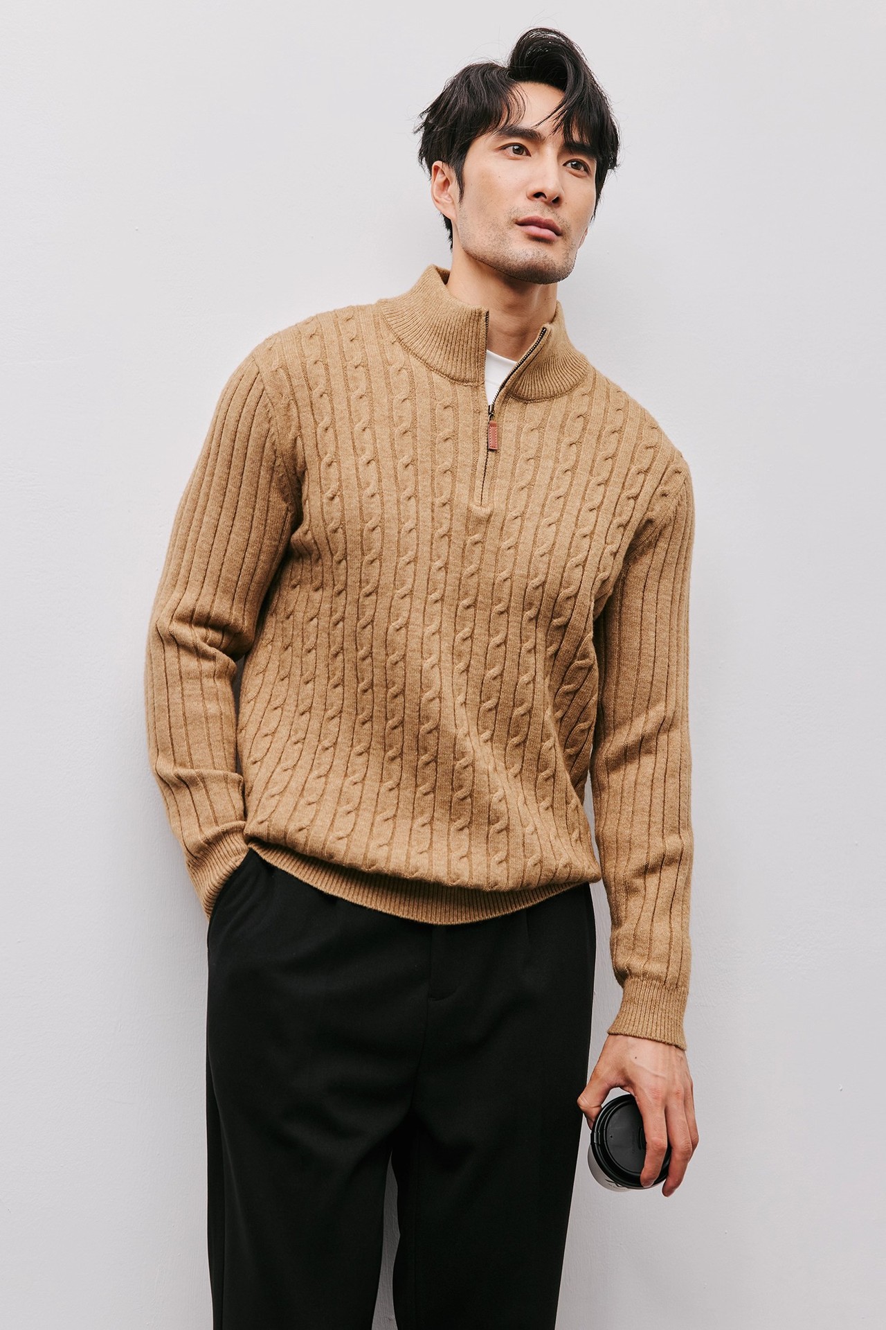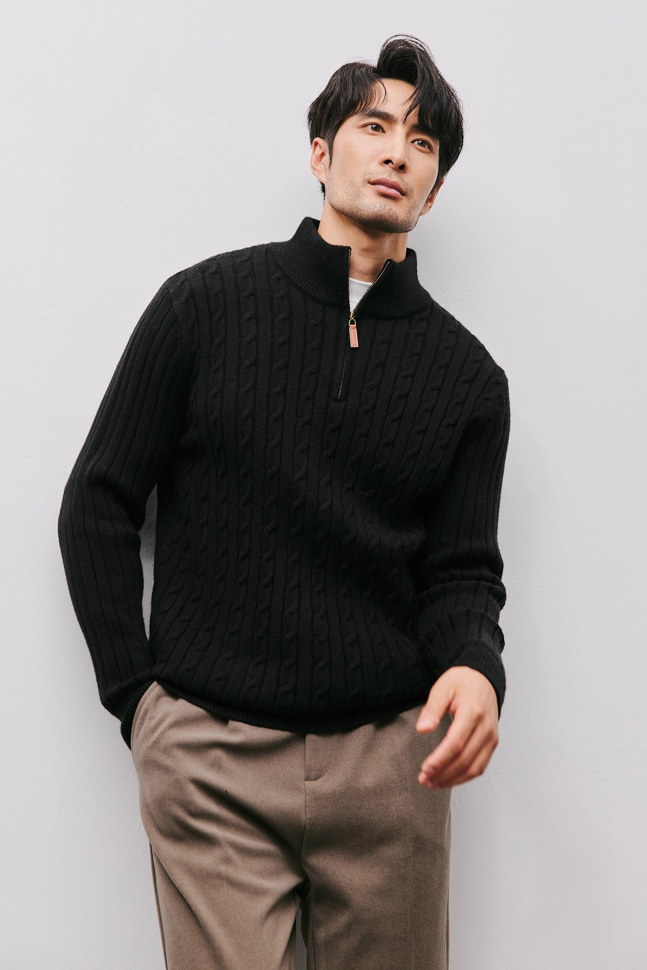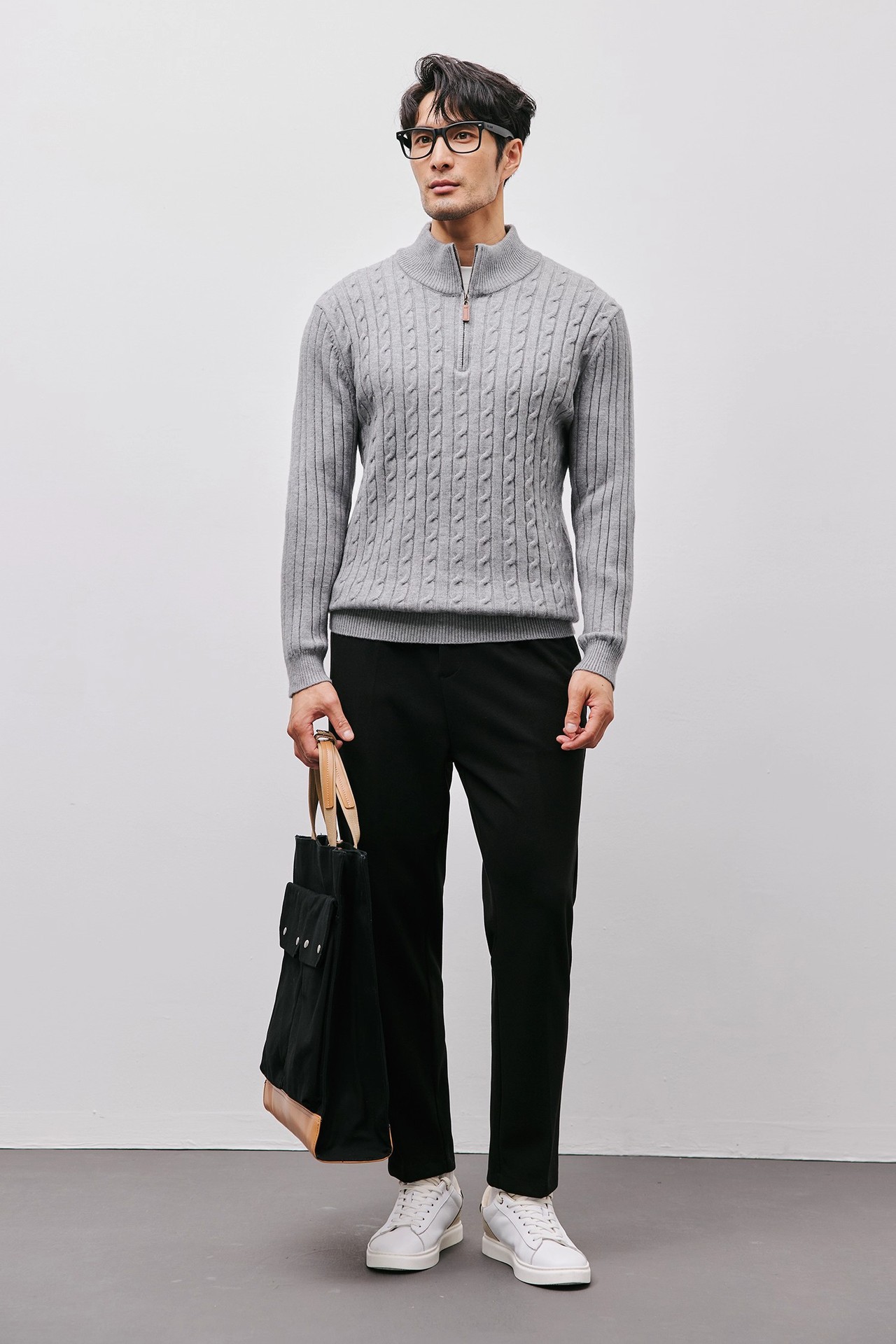 Explosiones transfronterizas de tamaño europeo medio cremallera jersey de hilado suéter hombre viejo viento de negocios otoño invierno fábrica al por mayor